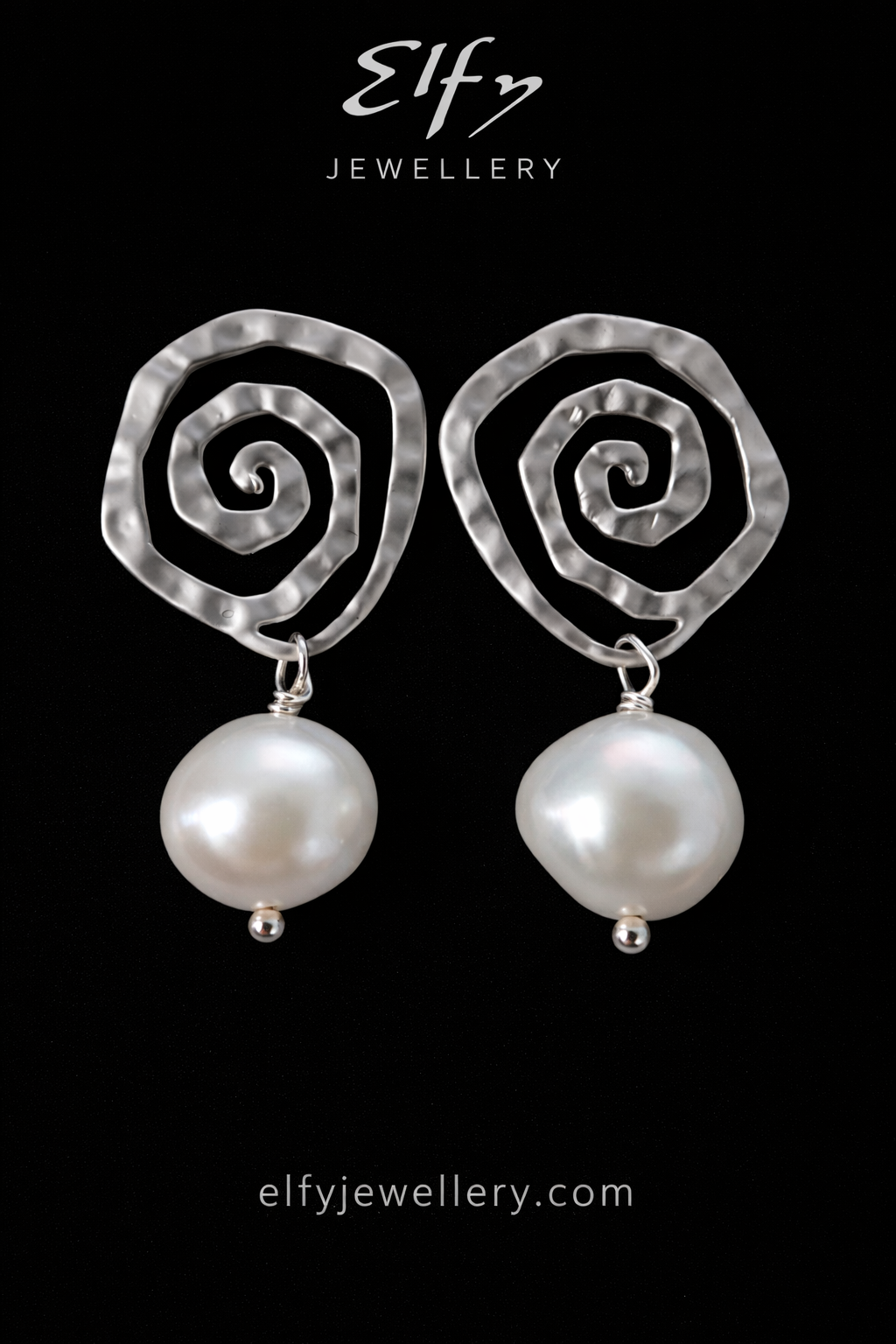 ELFY Silver Scroll & Pearl Earrings