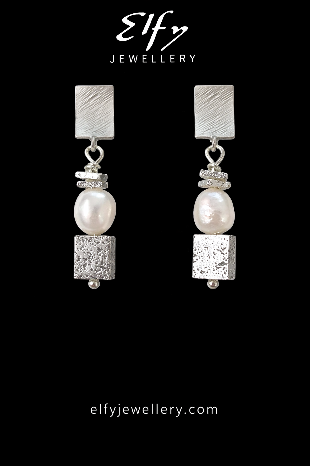 ELFY Matt Silver & Pearl Earrings