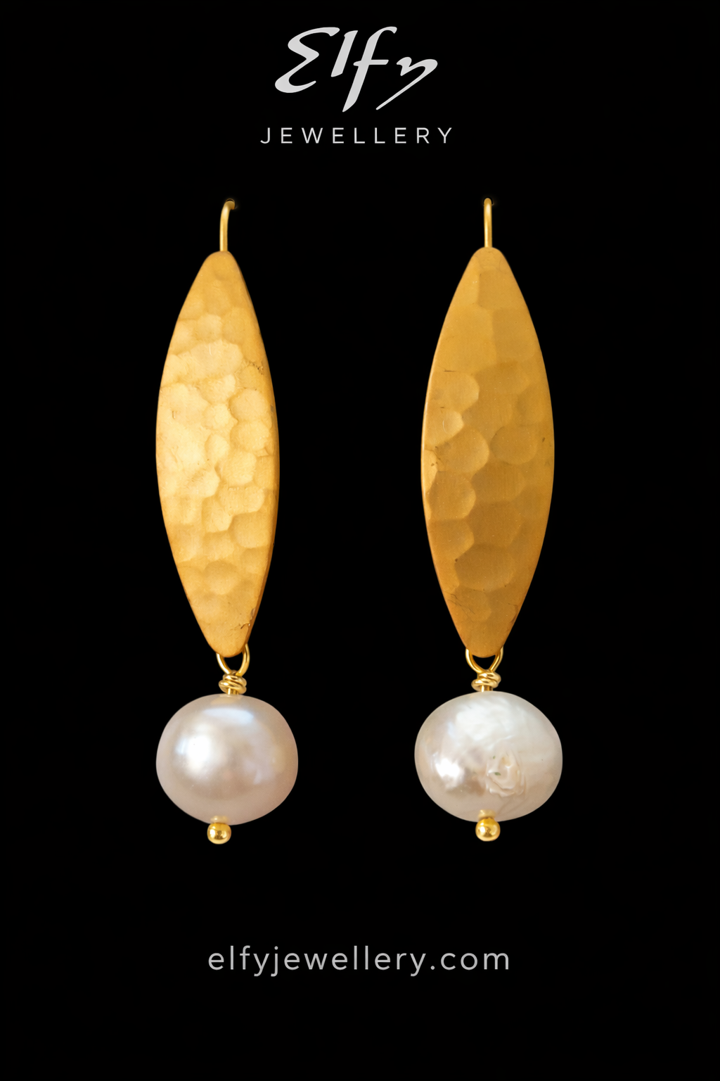 ELFY Gold and Pearl Teardrop Earrings