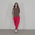 This oversized tee has a boxy, pullover silhouette that hits just at the hip with an array of mixed stripes. Details: wide neck, drop shoulder, three-quarter length sleeves, side slits. Made in a French terry knit.