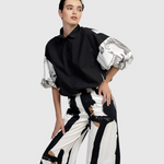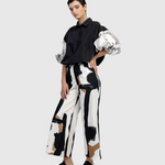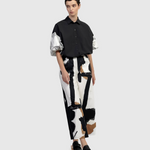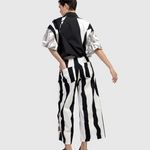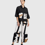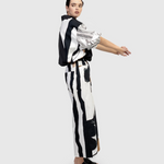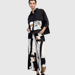 These Urban by Alembika Zebra Pants feature a straight-cut silhouette with a subtle flare, crafted from breathable cotton percale with a unique abstract print that varies with each pair. Designed for comfort and style, they include elastic waistbands and practical side thigh pockets and back patch pockets.