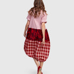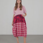 Sunny days are just an arms' length away in this picnic-worthy pullover dress. Made in a cotton poplin perfect for warmer temps, it has a relaxed fit with cocoon silhouette, and hits just below the knee with an elastic gathered hem. Features a scoop neck, elbow length sleeves (shown cuffed on model) and Alembika's signature pattern mixing.