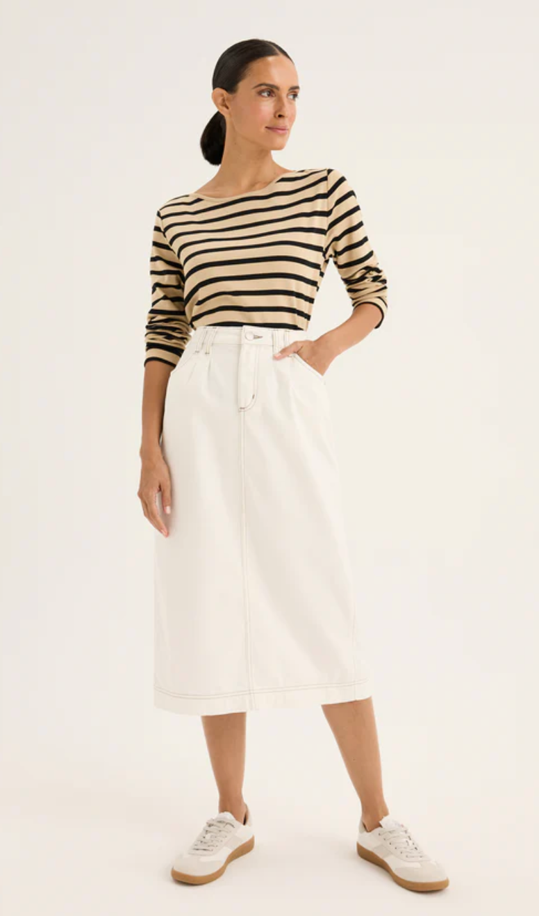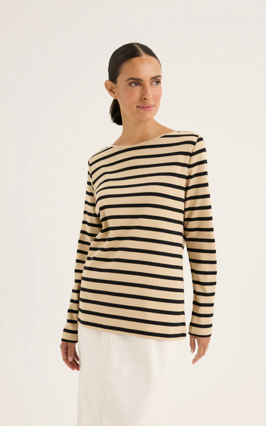 A timeless staple for any wardrobe, our Boardwalk tee features a stylish high boat neck and long sleeves, all crafted from our signature 100% cotton stretch knit fabric. Its relaxed...