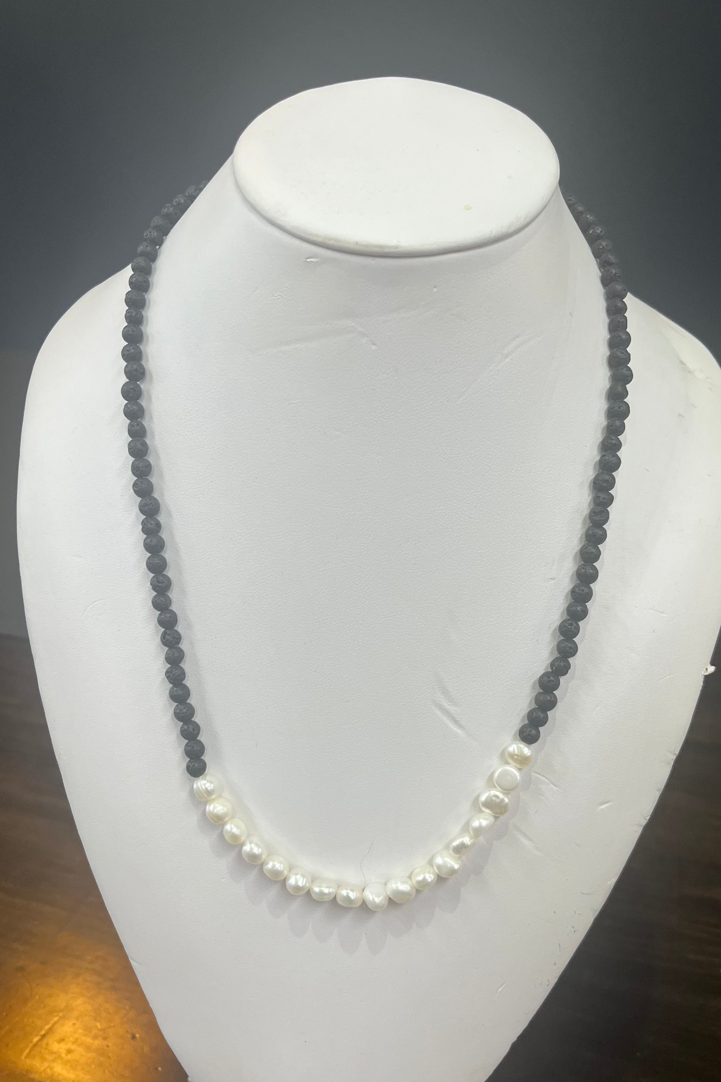 ELFY Black Lava & Freshwater Pearls Necklace