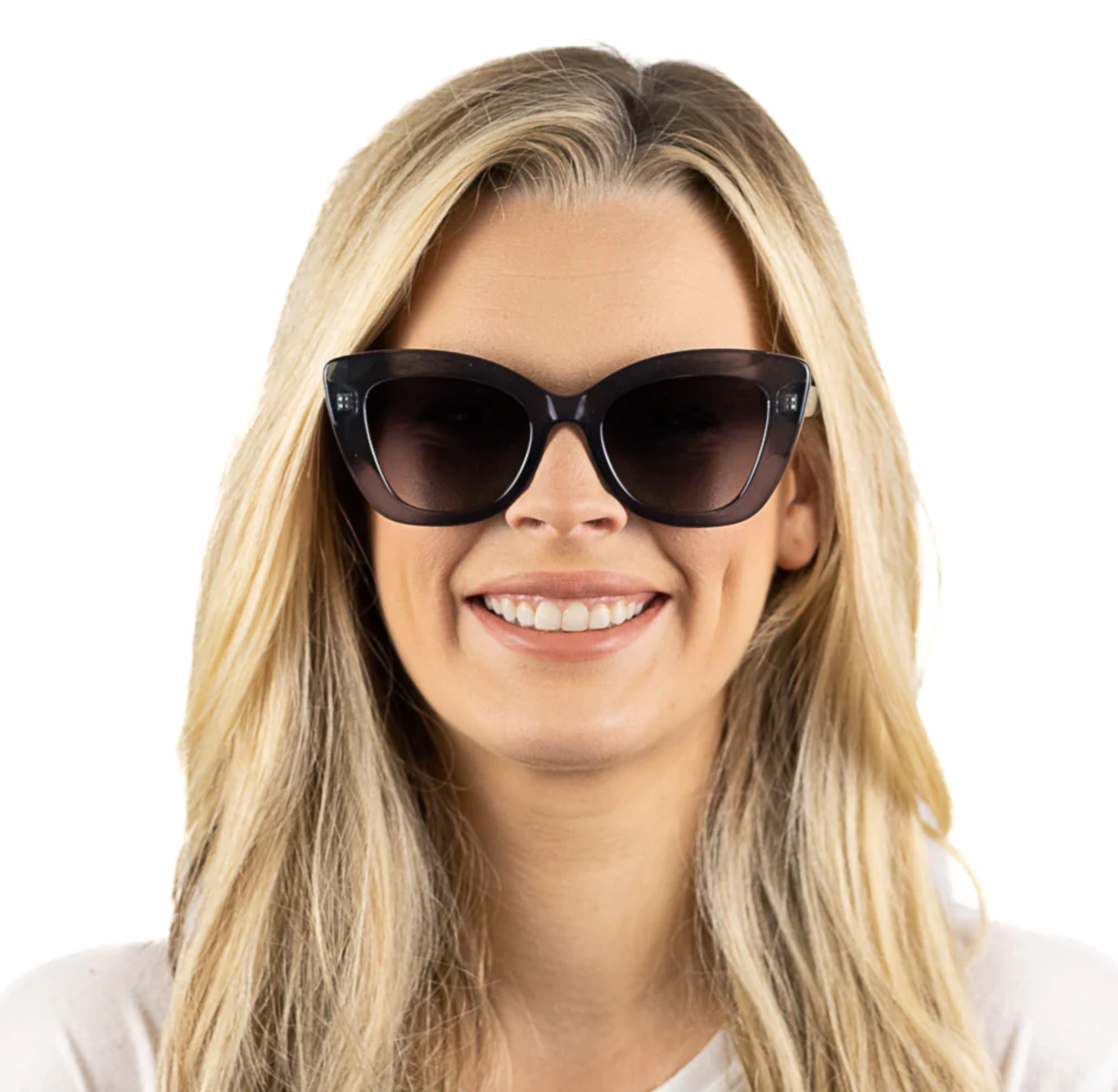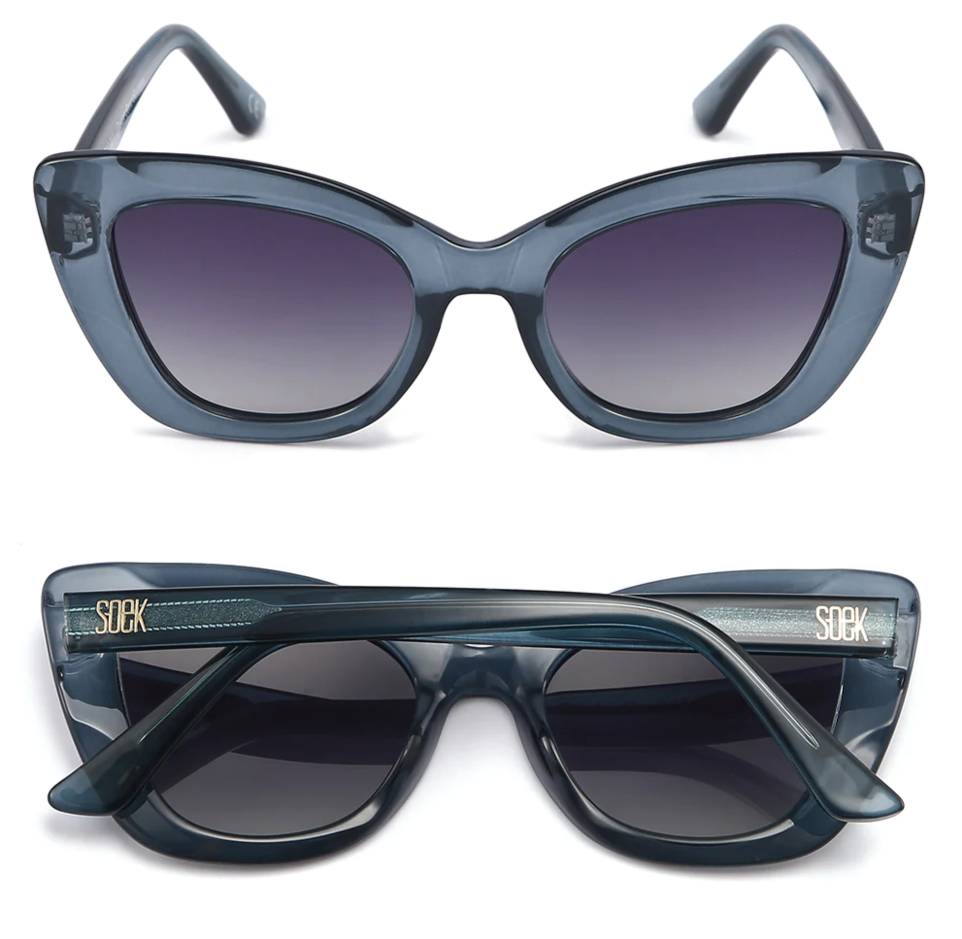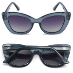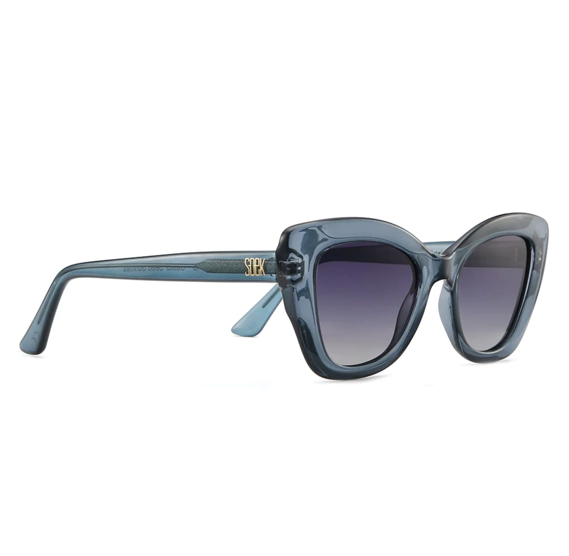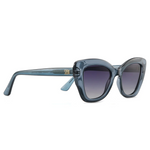 With striking lines and bold proportions, our 100% plant based Eden sunglasses are a chic wardrobe staple. Eden Indigo is a modern cat eye frame created from sustainable Castor Seed Oil and finished in a deep translucent grey blue and is suitable for all face shapes.