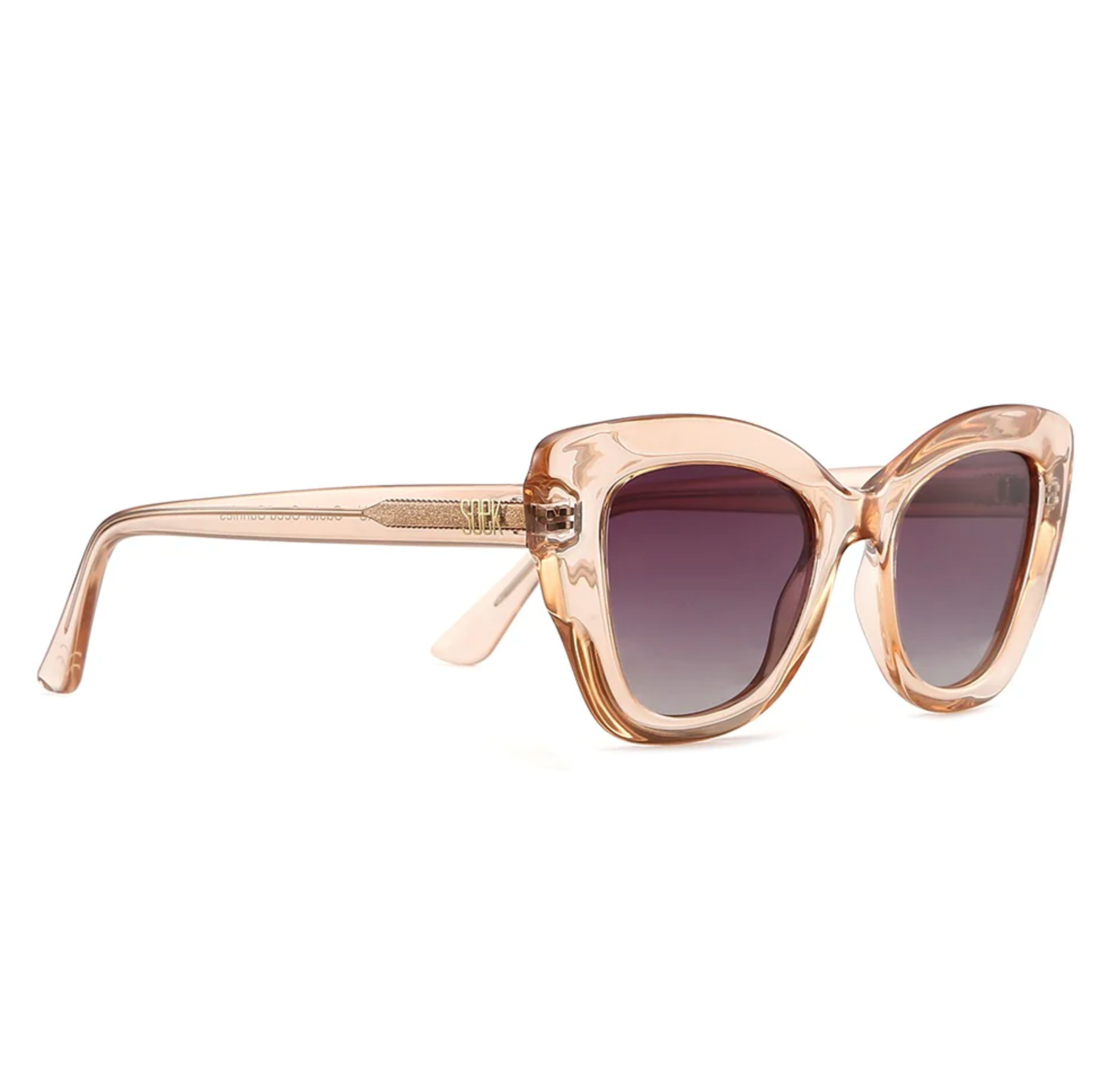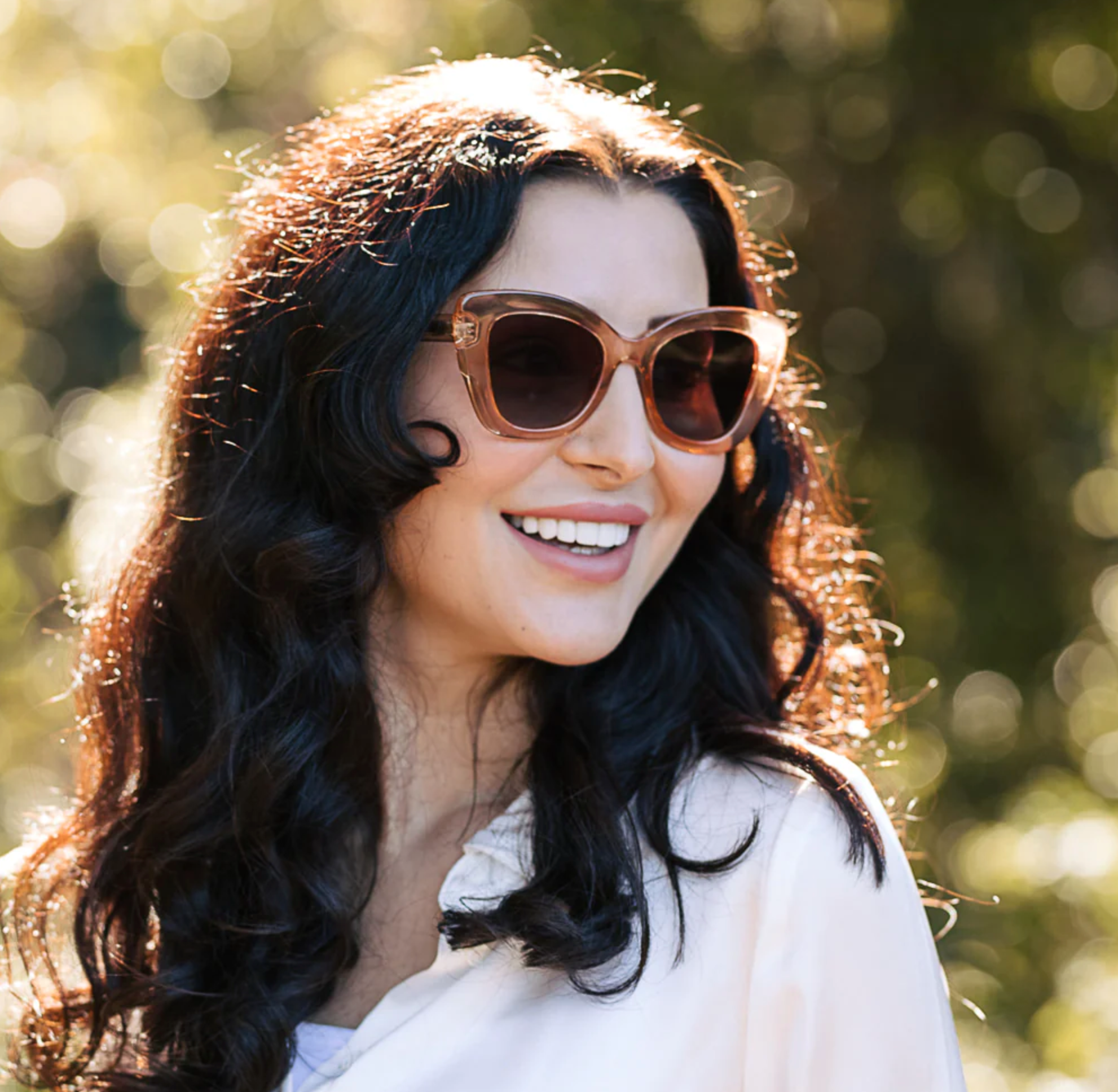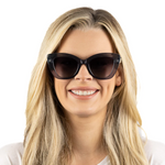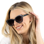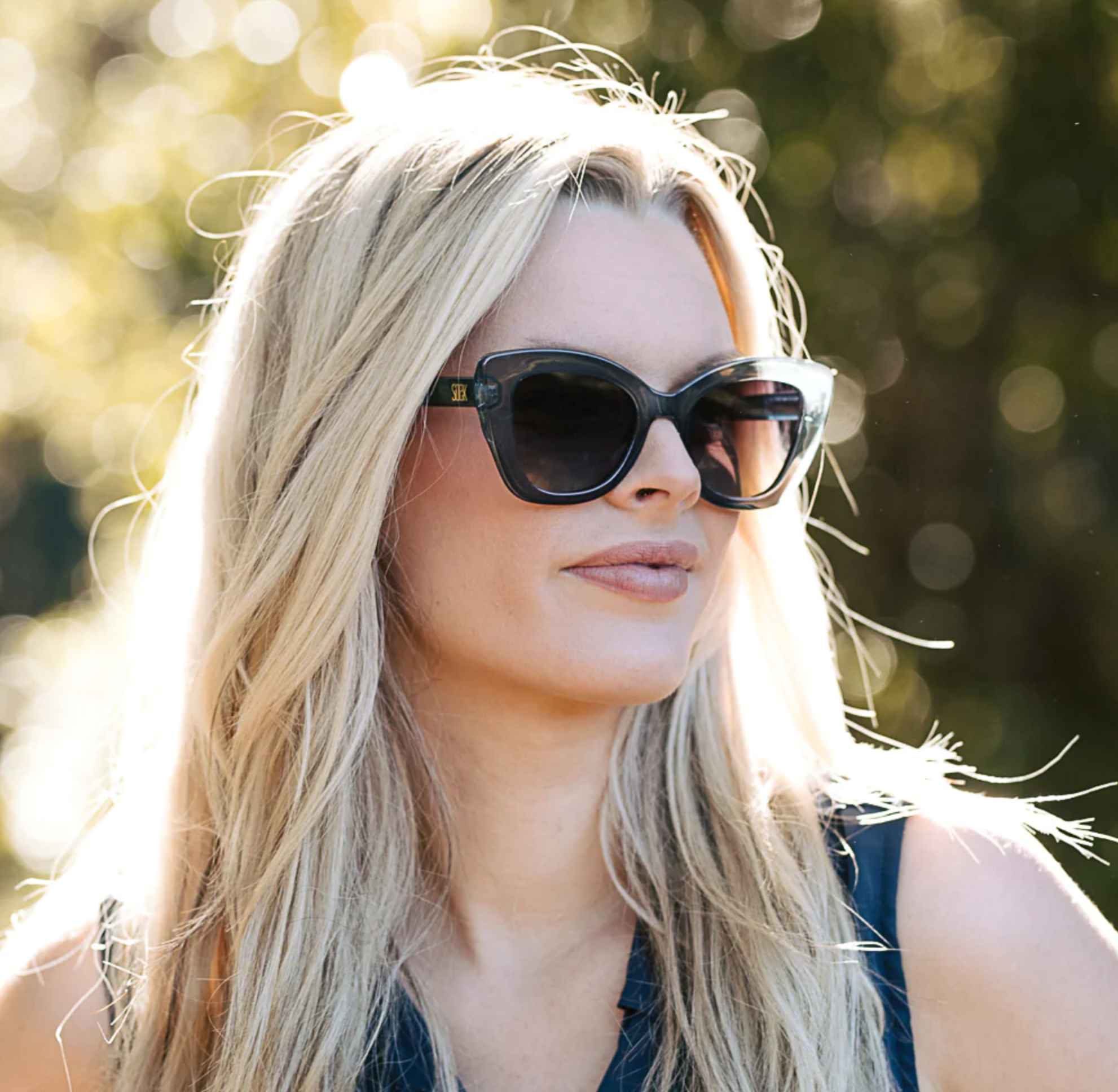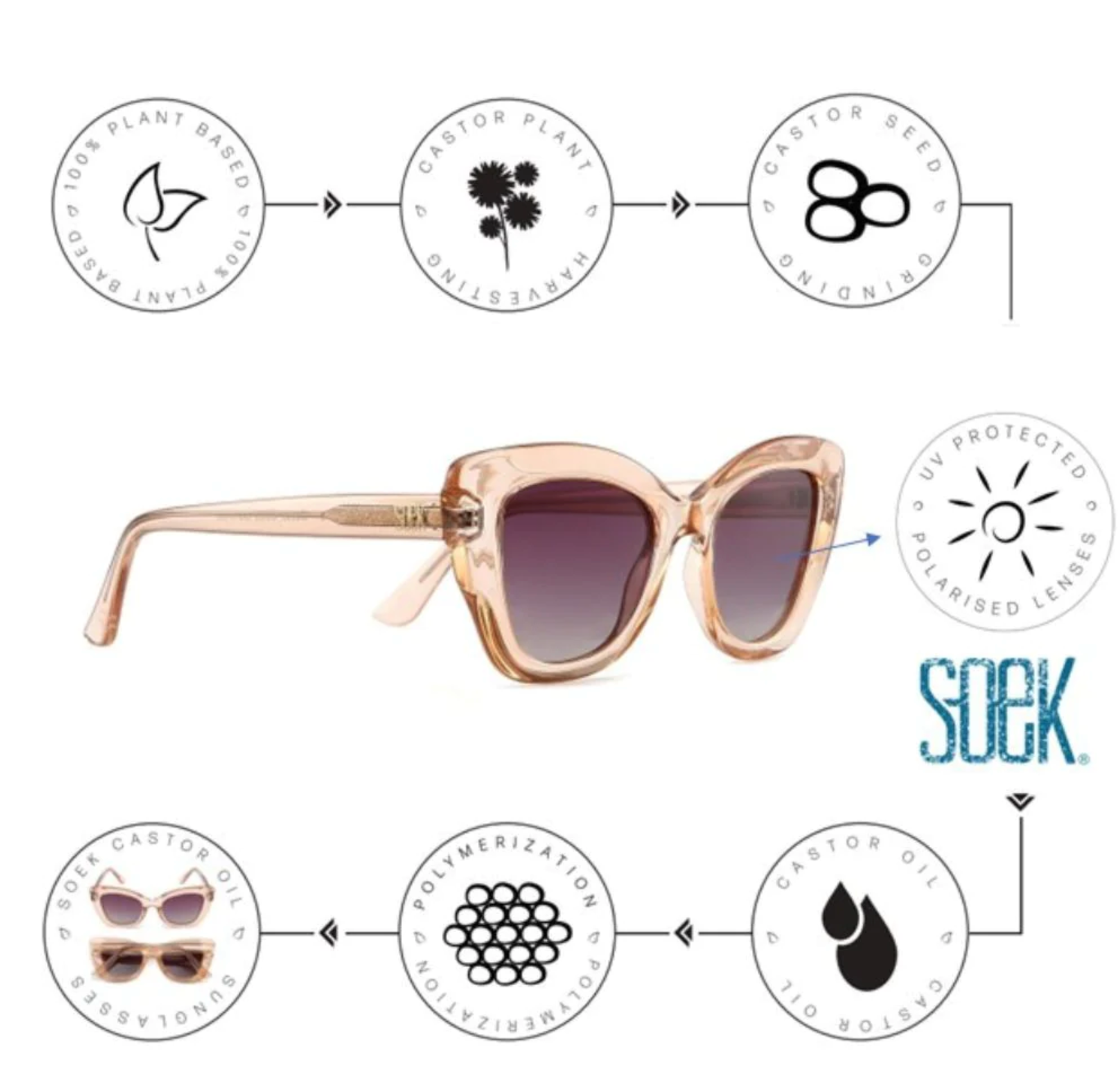 With striking lines and bold proportions, our 100% plant based Eden sunglasses are a chic wardrobe staple. Eden Indigo is a modern cat eye frame created from sustainable Castor Seed Oil and finished in a deep translucent grey blue and is suitable for all face shapes.