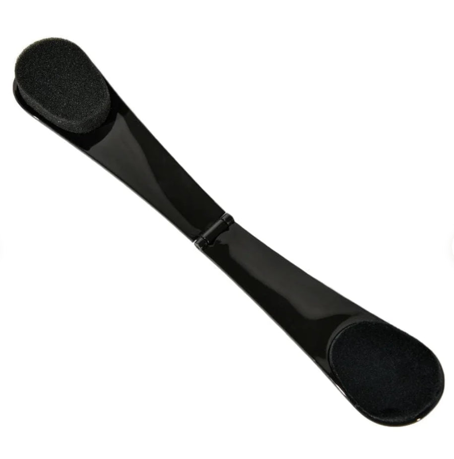 - The curved handle and sleek, foldable design provide precision and control, making your tanning routine a breeze.