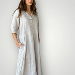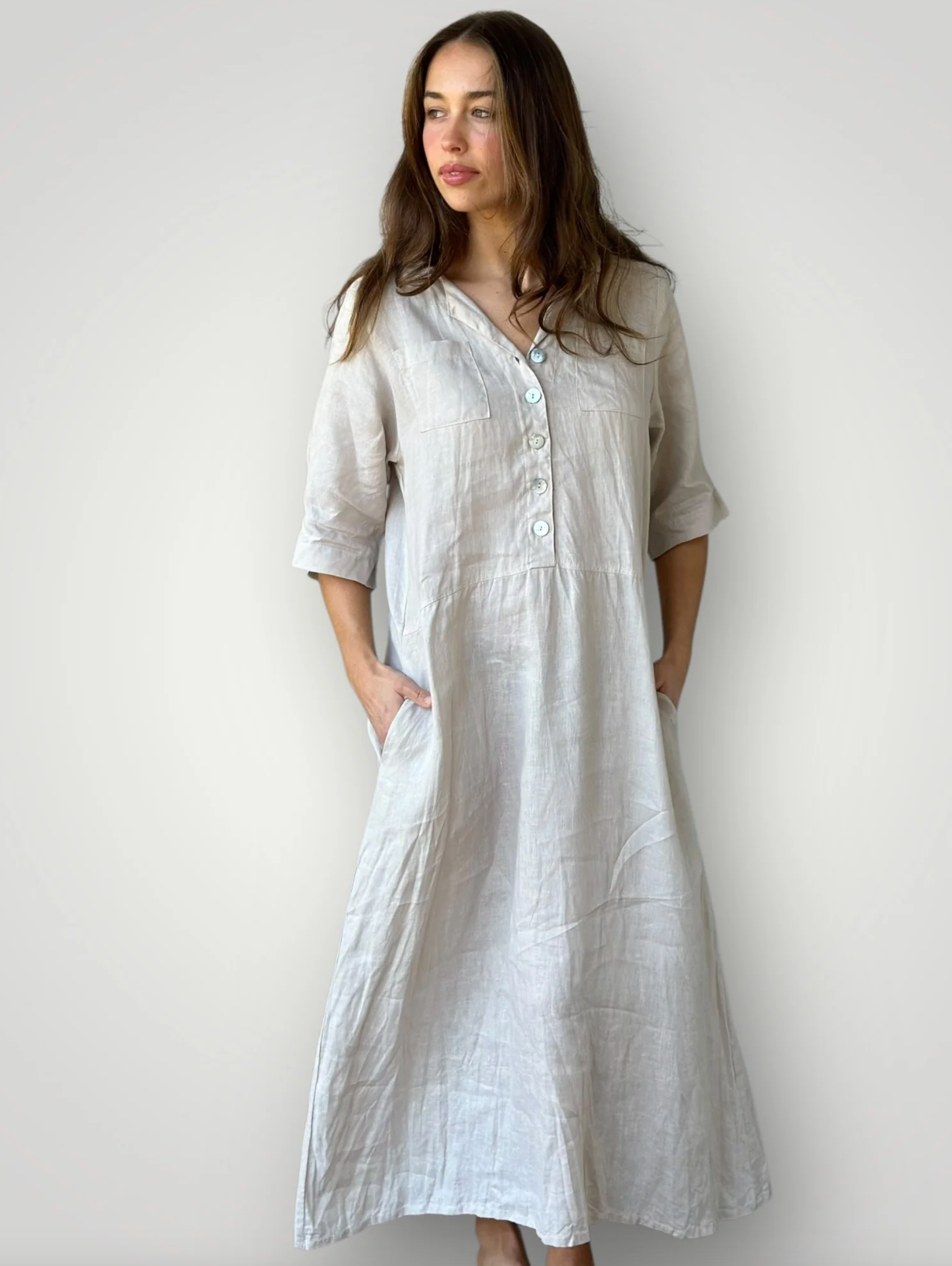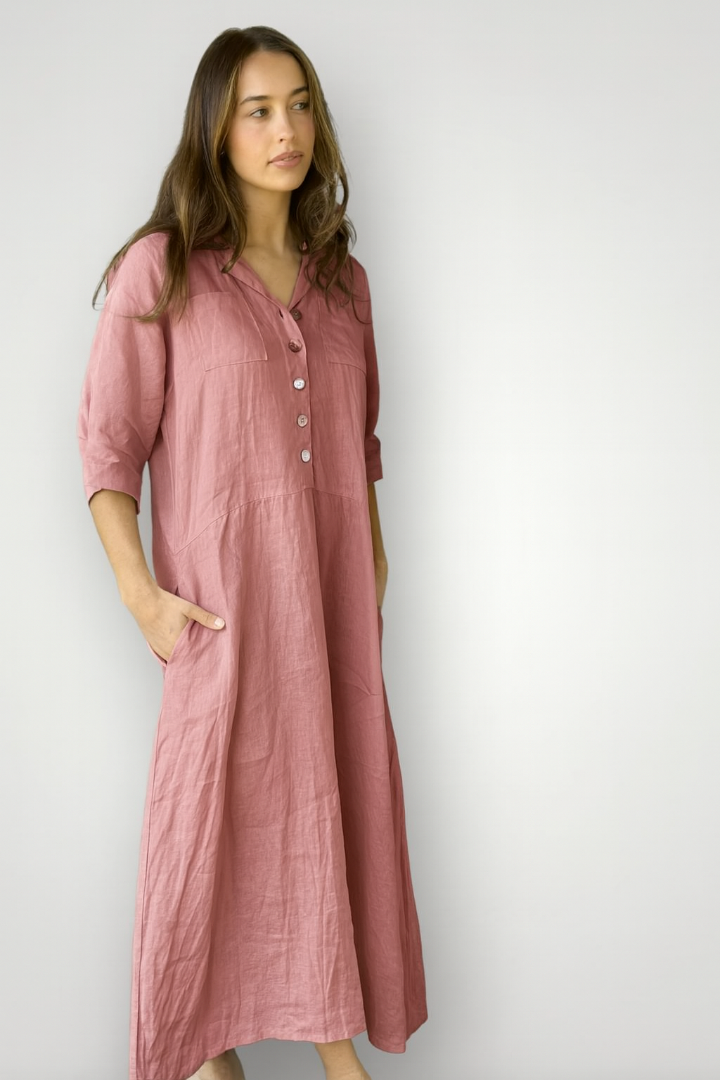 A stunning longer dress for in this beautiful neutral almond colour and dusty pink