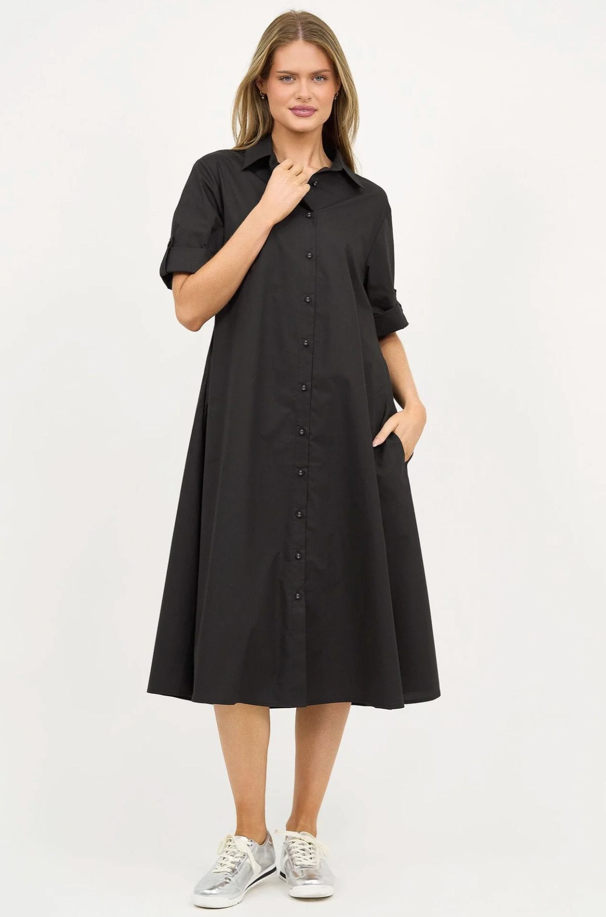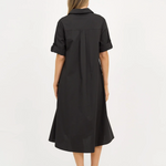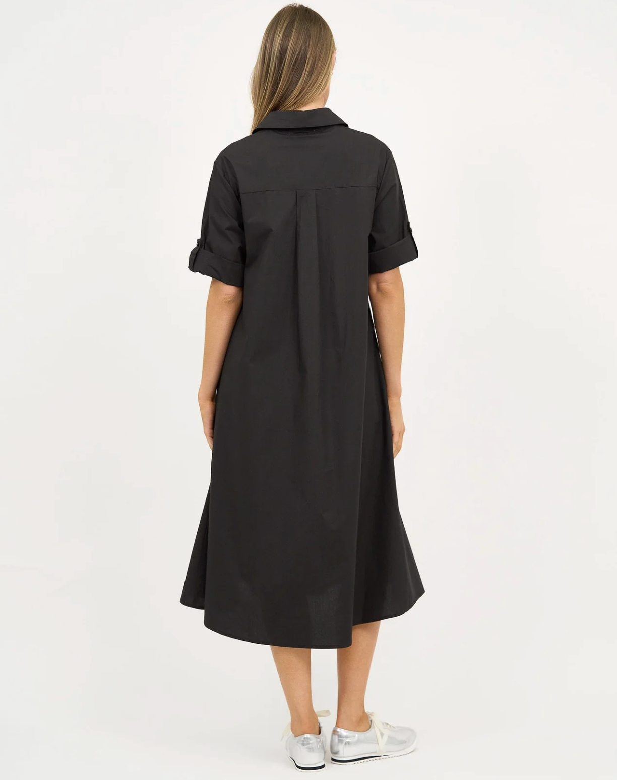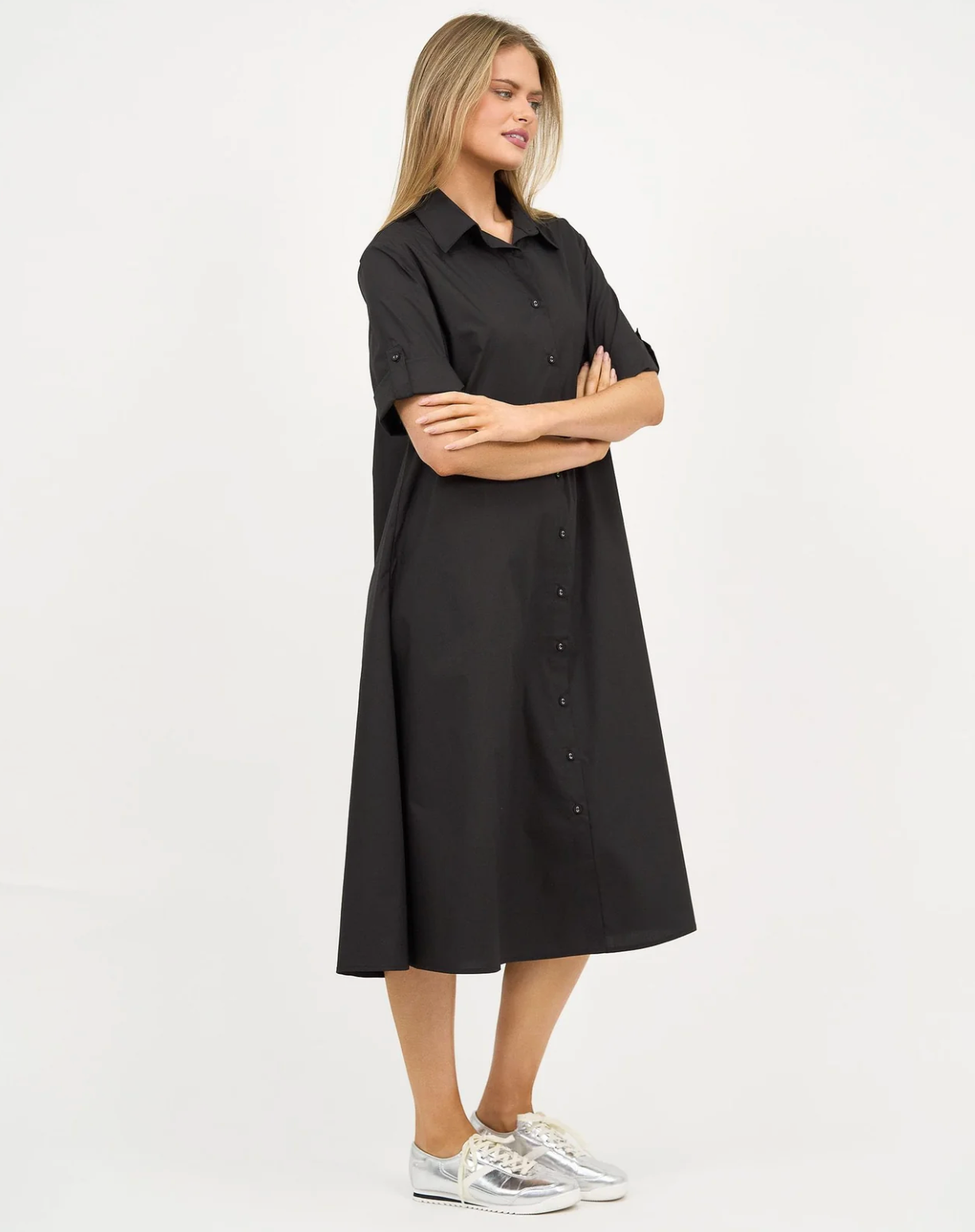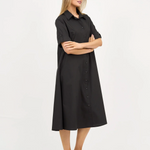 A timeless essential, the Cotton Relaxed Shirt Dress brings effortless style to your everyday wardrobe. Designed in a breathable 100% cotton, this easy-fitting piece features elbow-length sleeves with tab detailing, functional side pockets, and a refined midi length that’s both flattering and versatile. Perfect for weekdays to weekends.
