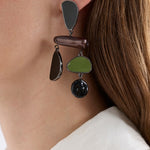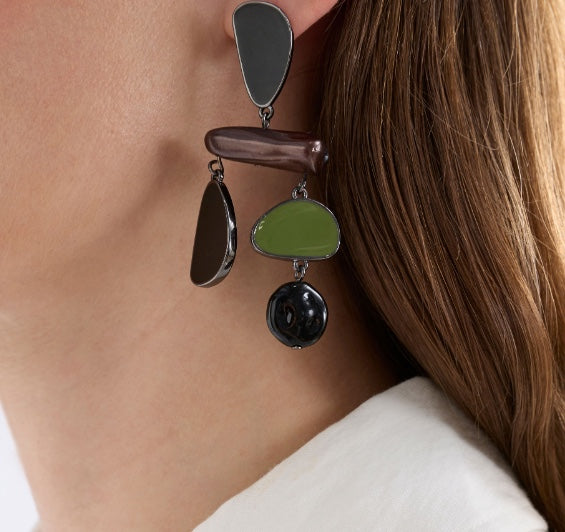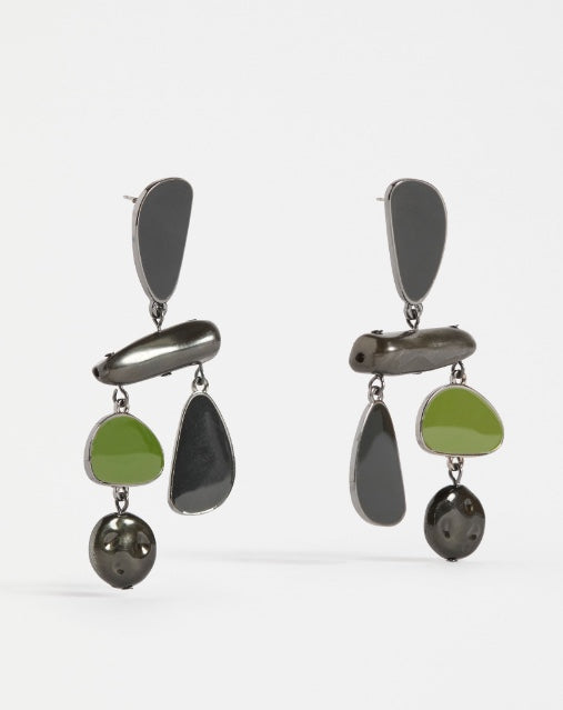 METAL, FAUX PEARL, ENAMEL in black & olive green