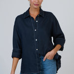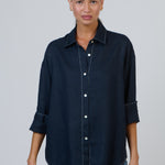 Relaxed, boyfriend cut, this shirt has been crafted in soft linen with a subtle stitch detail.