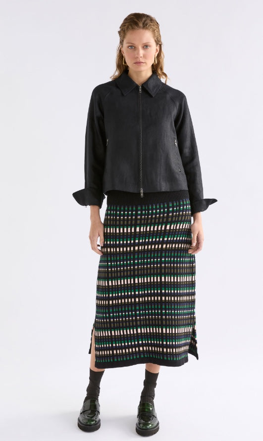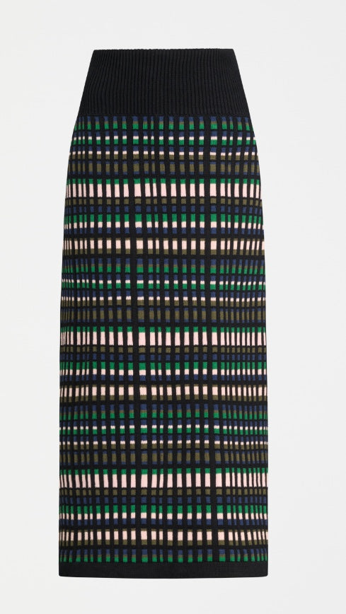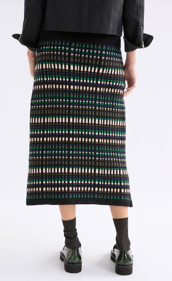 Beautiful, 100% organic cotton skirt which will keep its shape and be worn over and over. The wide rib waistband can be worn extended for more drama, or folded down. The multi-coloured check knit design allows for this piece to be worn with many top options and the straight skirt with side splits at the hem provides comfort and ease of movement. Pair with the Svea Organic Knit Top for a coordinated look.