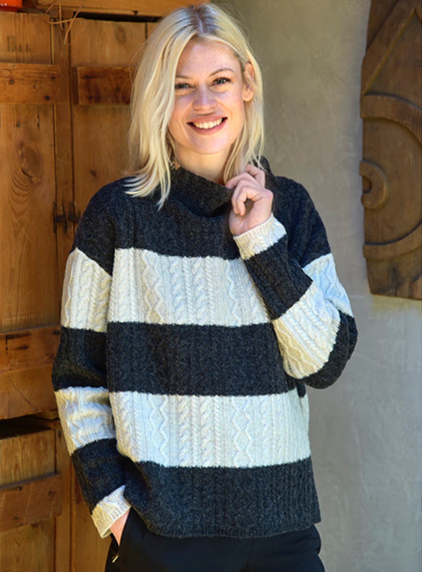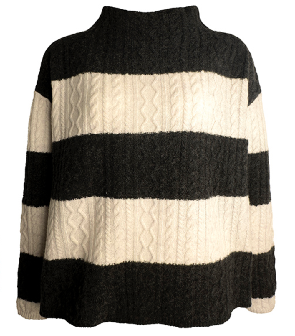 The Daikon sweater is a lovely high neck knit from Mansted's newest venture, Nature Of Knitwear by Charlotte Mansted. Charcoal and Ecru colour way.