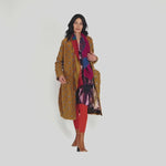 This mid-length coat has a cocoon silhouette with a V-neck, long cuffable sleeves, hidden snap front buttons, and one draped front pocket and one in-seam pocket. It's made in a felted stretchy fabric with raised polka dots, emphasising the impeccably seamed detailing and tailored fit. The perfect pop of colour to pair with darker hues. Interior is unlined.