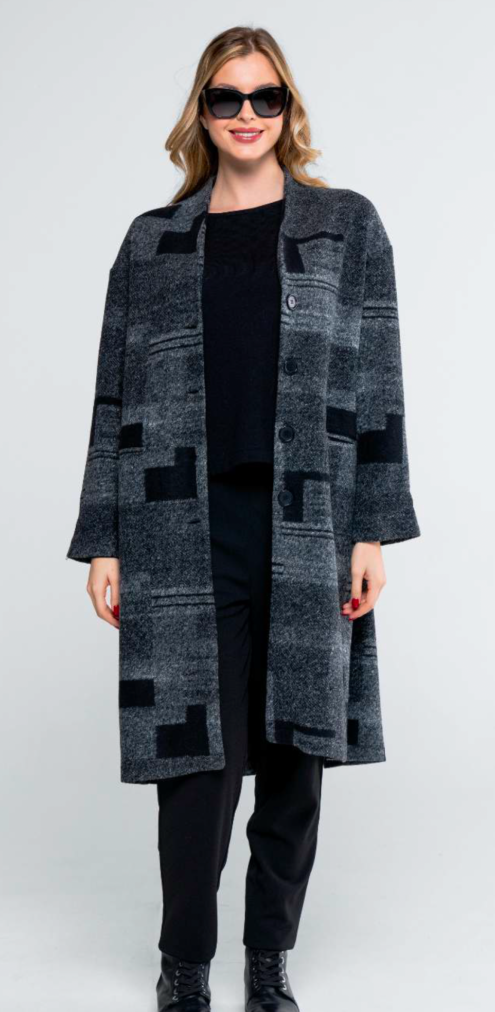 A gorgeous overcoat with a tailored edgy finish and fabulous textures.