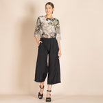 These pants are wide, 7/8 in length and have elastic at the waist. They are called lounge pants for a reason. They are comfy and soft and will be your go to for relaxing in. Take them from work to play as the bamboo fabric is soft, lightweight and lovely to wear.