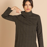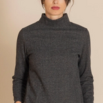 The high crew tee is a long sleeve tee design with a high neck resembling a turtleneck.  It is a simple straight cut, perfect for tucking into pants or skirts or wearing underneath jackets or jumpers for an extra layer. Splits at the side hem give the tee a relaxed fit through the hip.