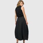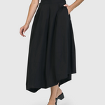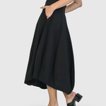 Care to dance? This high-waisted balloon midi skirt brings together sophistication and easy movement. Fitted at the waist with a back zipper and button closure, plus side pockets and generous skirting with a gentle asymmetric hem.