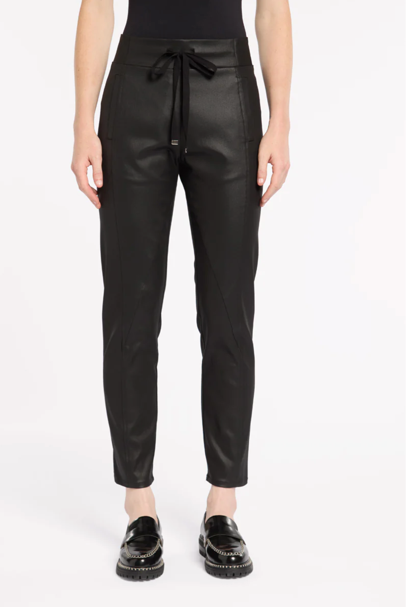 Reminiscent of a waxed denim, this stylish Coated Jean gives a sleek, modern look. Cut from a crease resistant modal blend fabric with plenty of in built stretch ideal for everyday wear, finished with a back zipper for a comfortable fit. Ultra versatile, you cna dress them up for a night out with a printed blouse or opt for a more casual daytime look with a printed tee and snekers. A great and affordable alternative to a leather pant, it's sure to be a g-to piece for your trans-seasonal dressing.