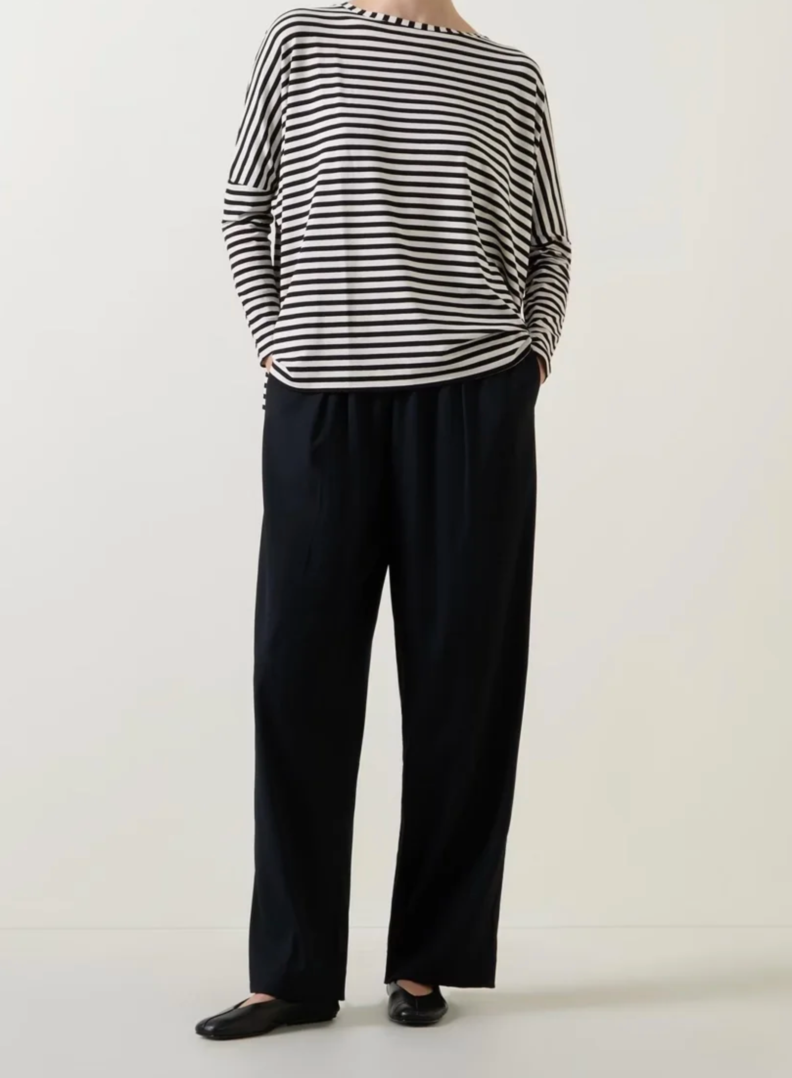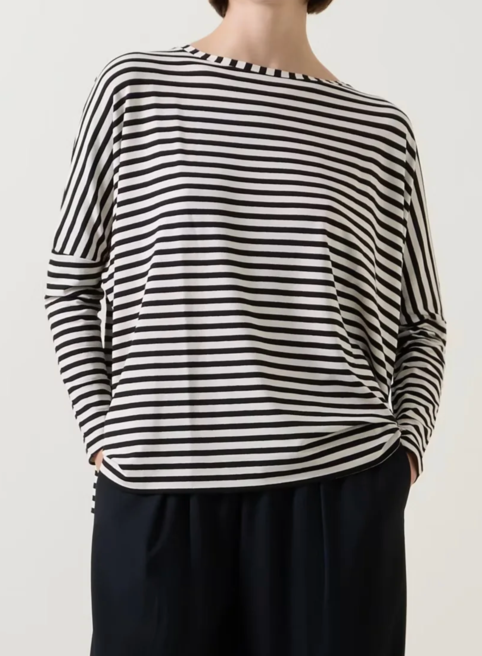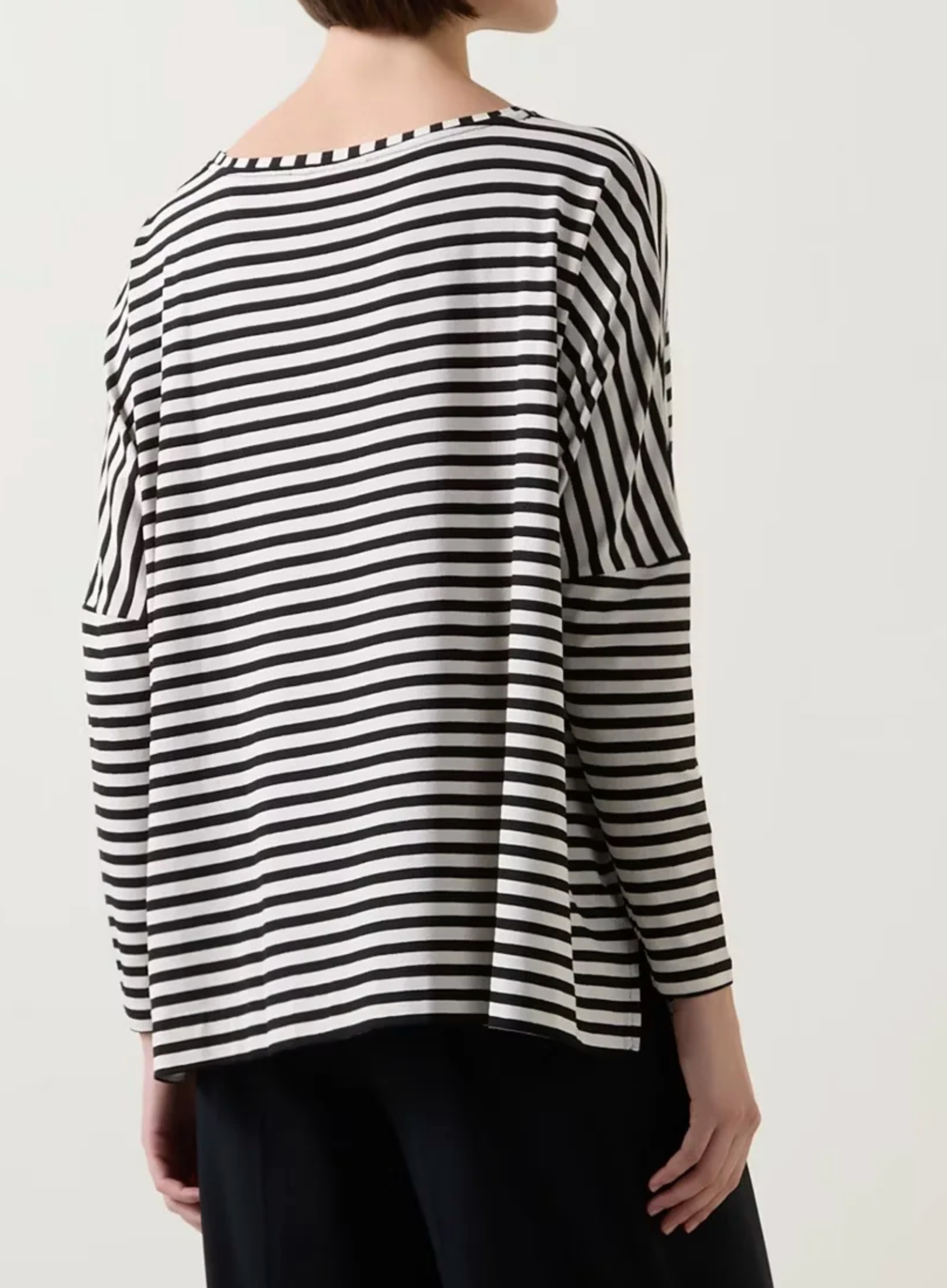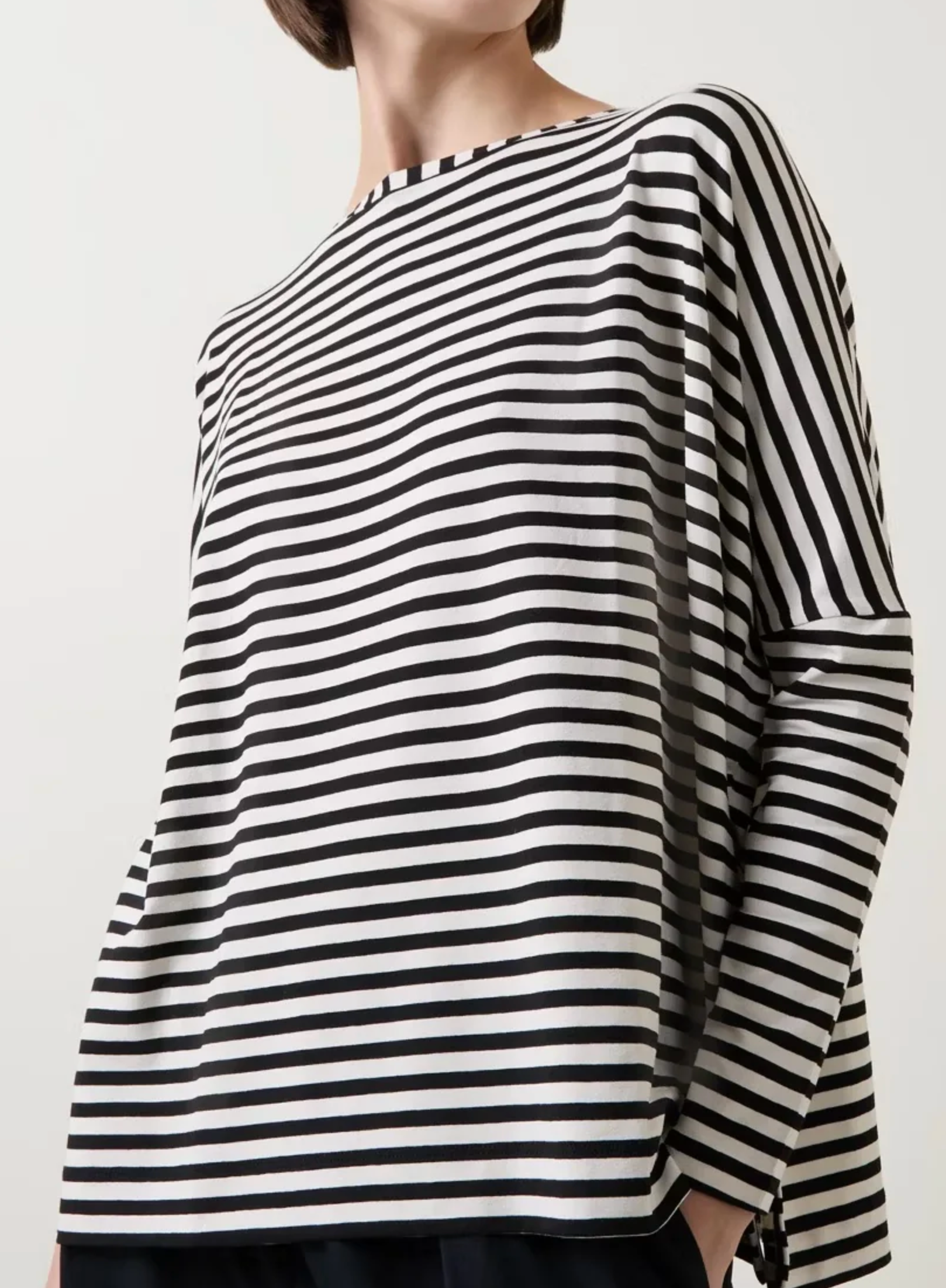 You can never have enough beautiful tops. This stripe top is cut in a soft jersey material that makes it so comfortable you'll want to keep it on all day. With its oversized cut, the top falls loosely over the body, while the long, narrow sleeves create a nice contrast. The top also features a round neckline, dropped shoulder seams and short side slits. Wear it with slim trousers or skirts for an effortlessly stylish look.