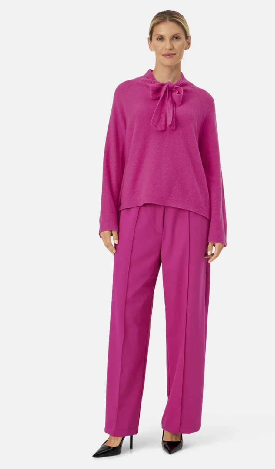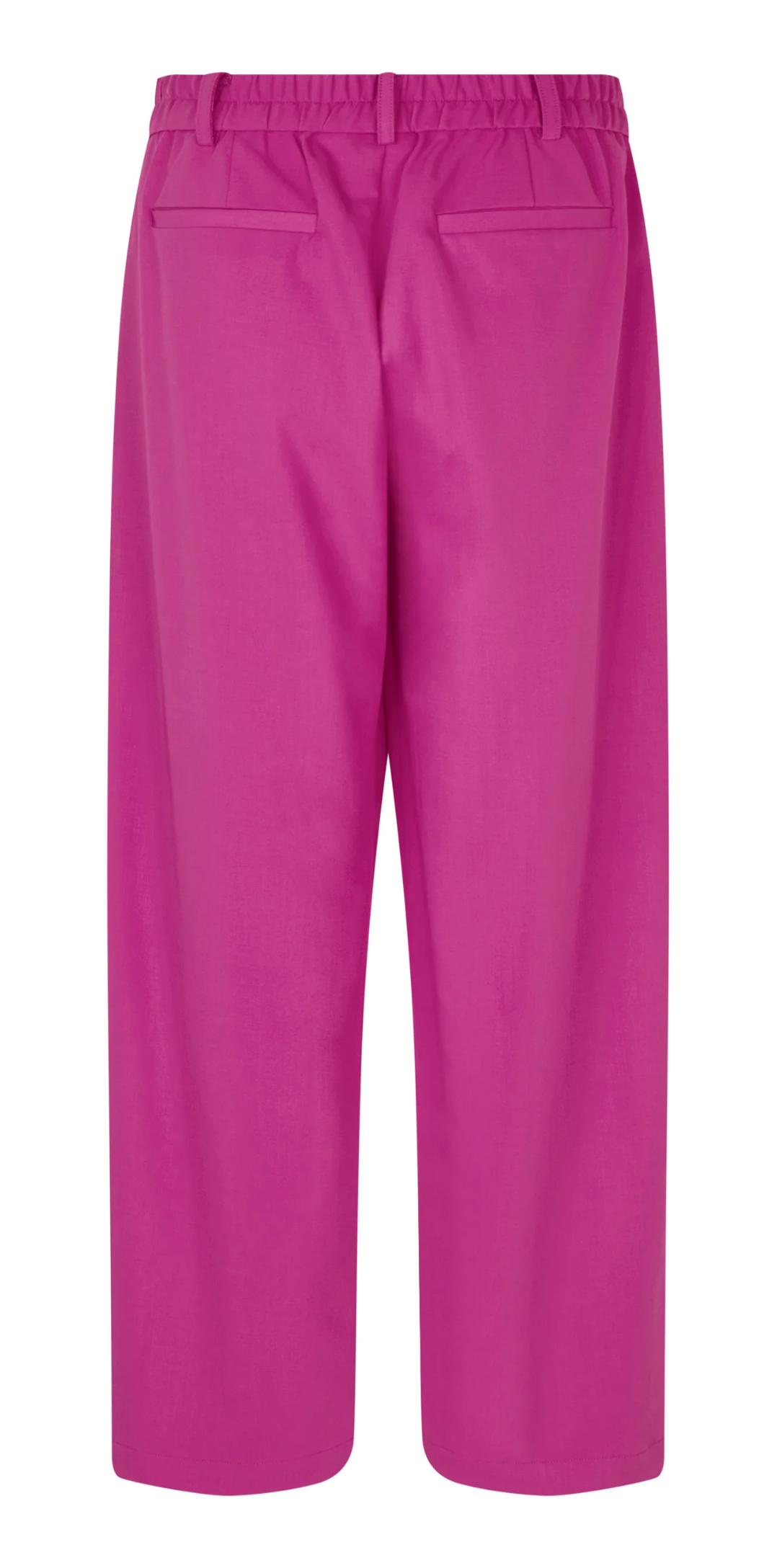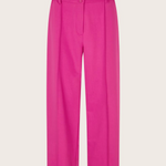 These solid-coloured trousers combine a masculine cut with feminine elegance in the finest way. They have a relaxed fit with welt pockets, sewn pressed pleats and welt pockets at the back, while the long, wide legs are loose and flattering. A great pair of trousers for a casual yet stylish look.