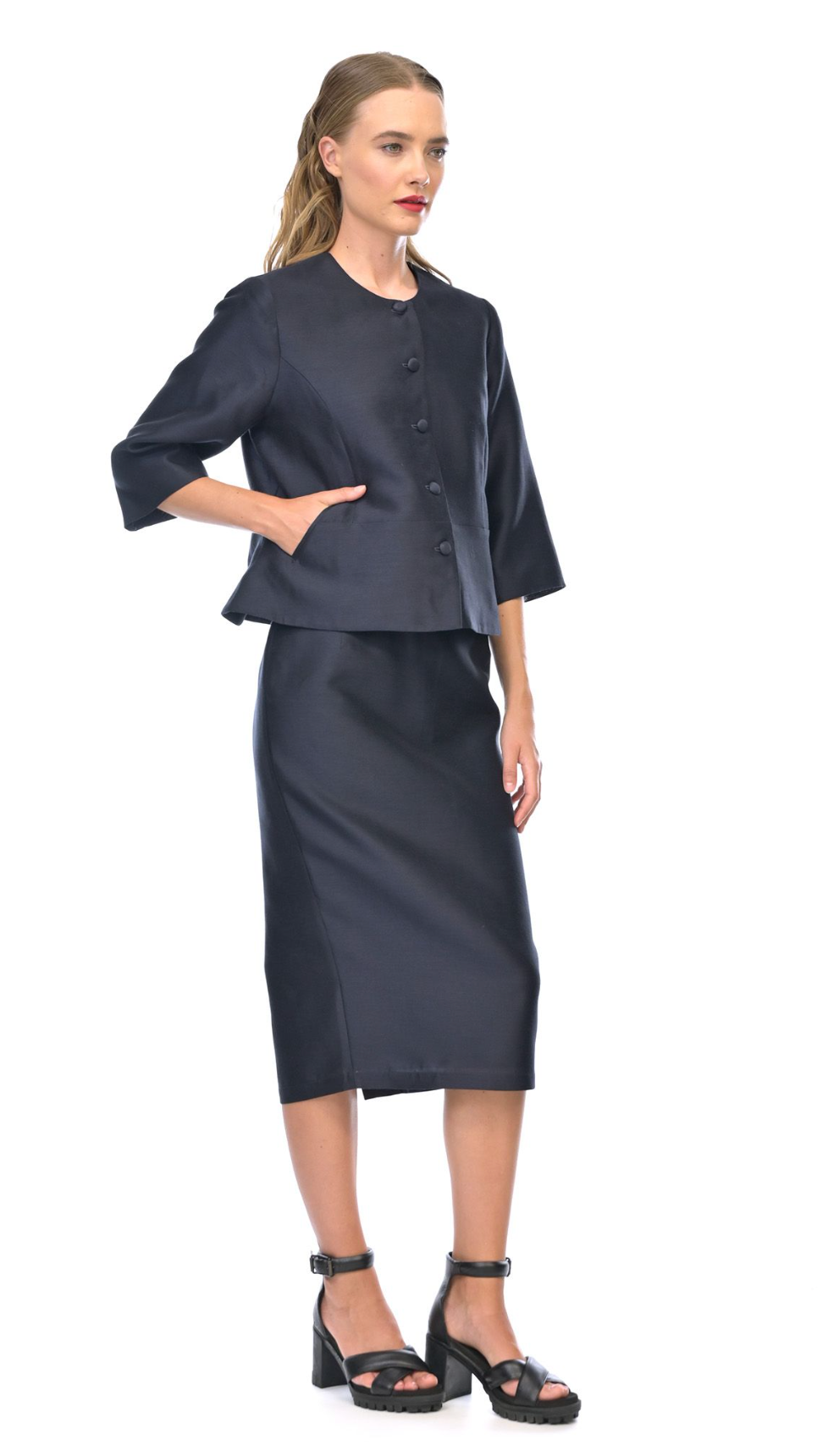 The madmen skirt is a simple elegant fitted pencil skirt with a silhouette reminiscent of the 1960’s. Tapering from hip to hemline following your form.