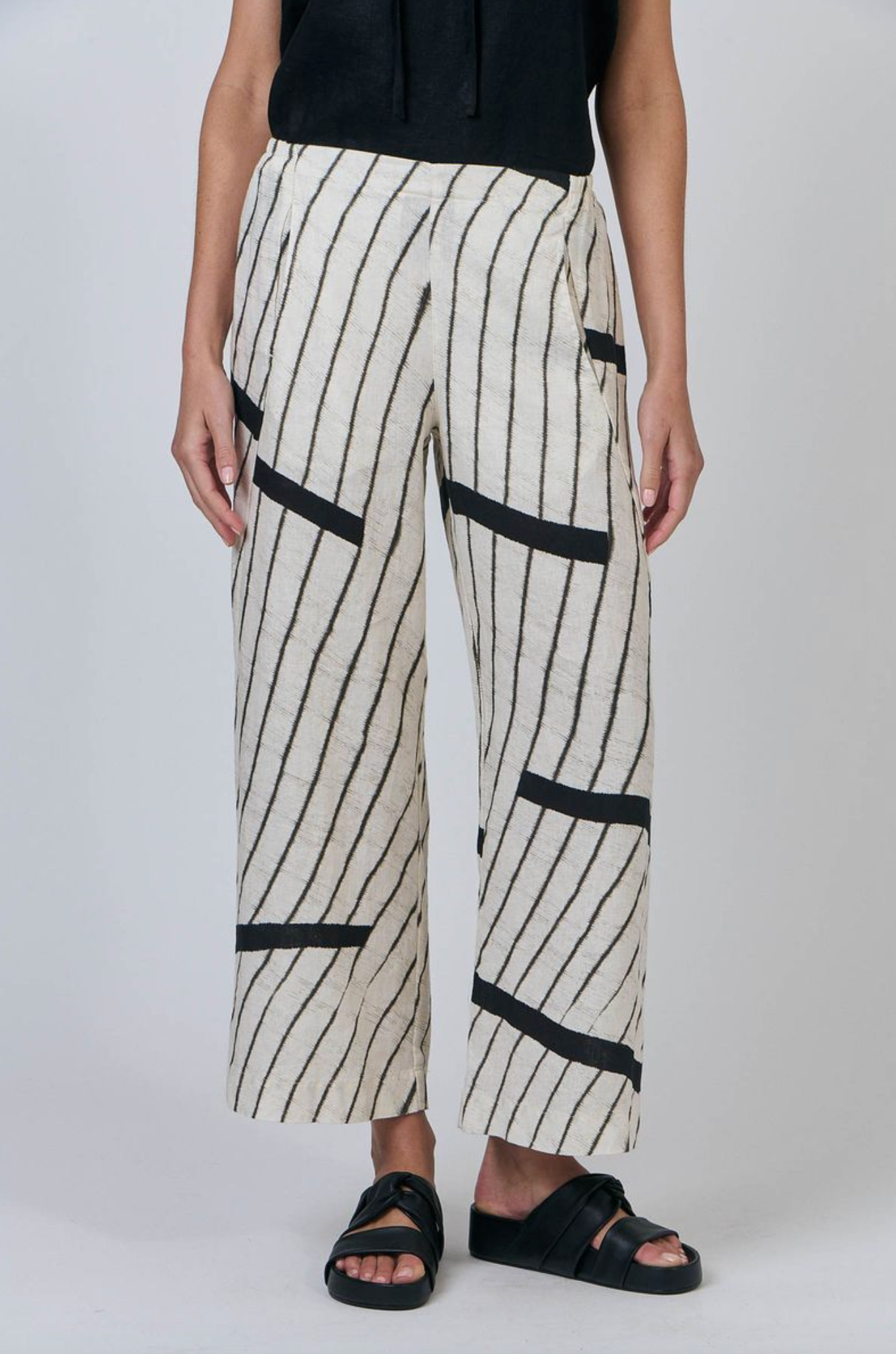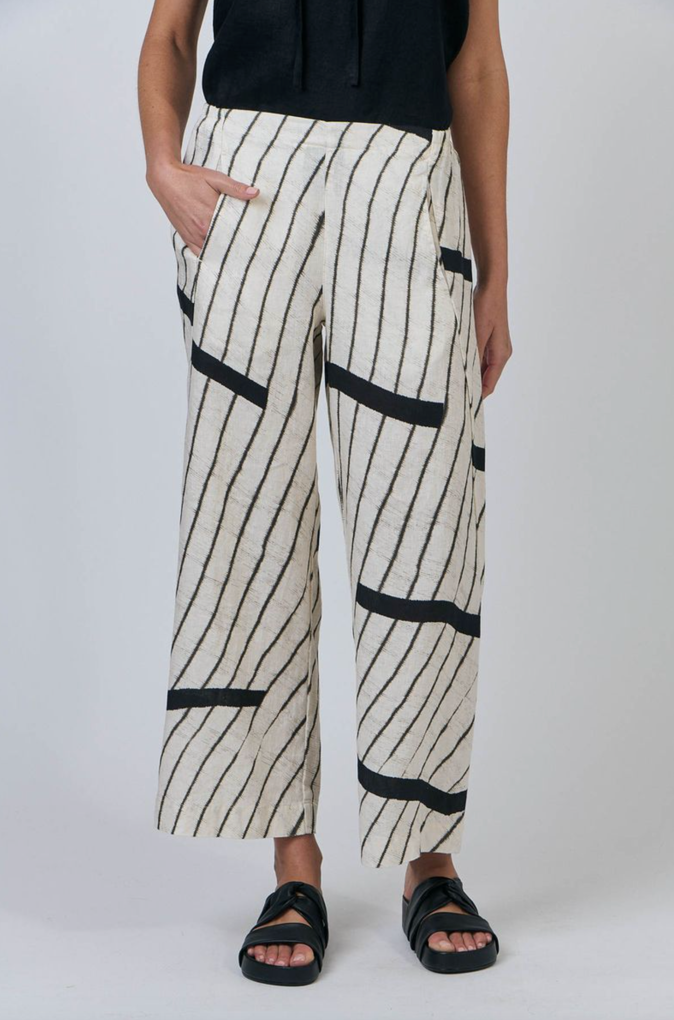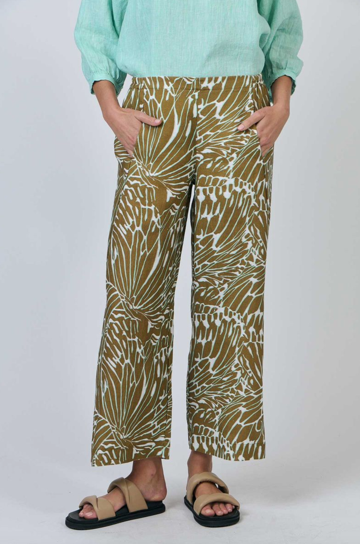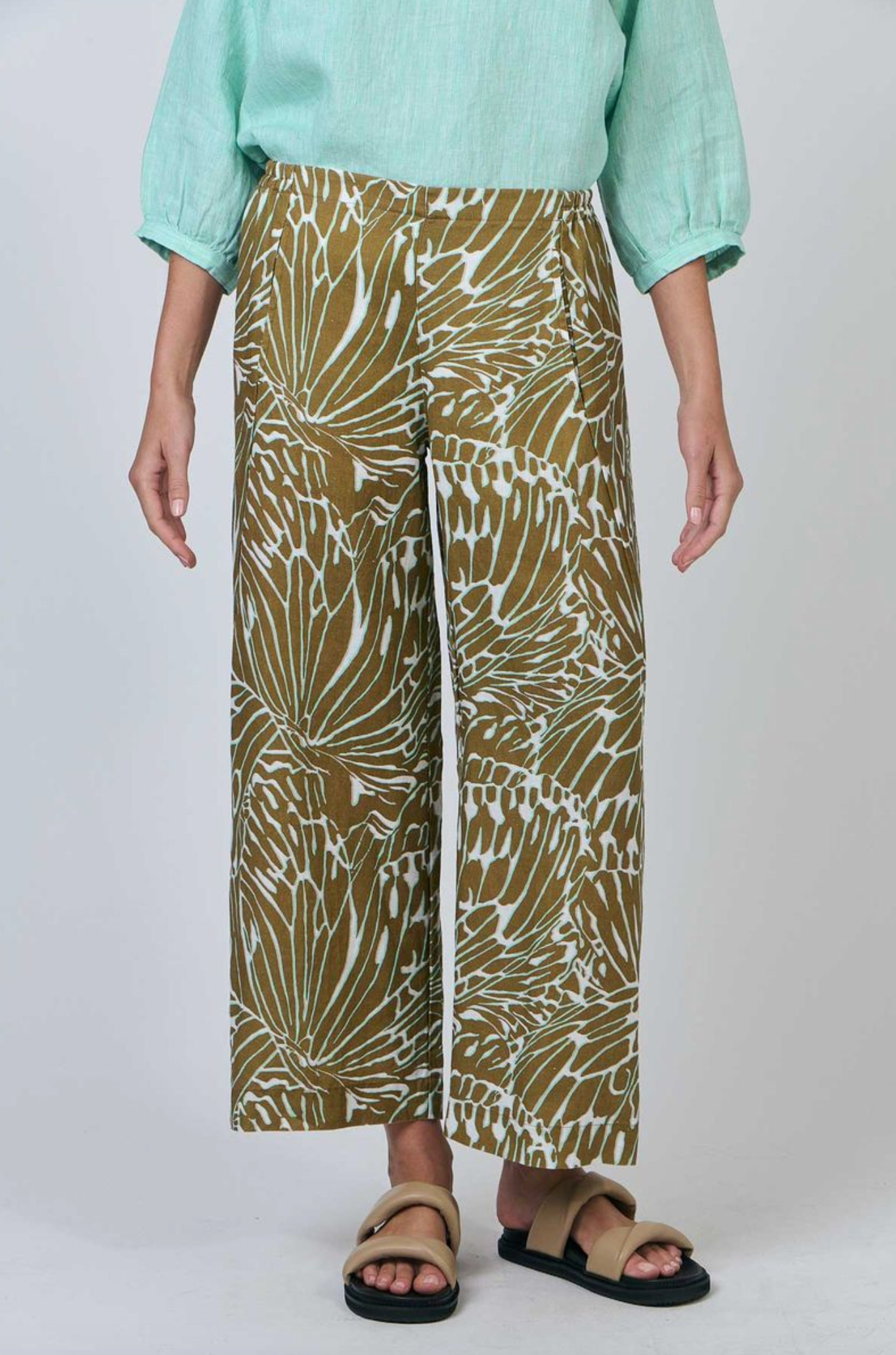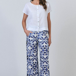 GA398 is a full-length, wide-leg pant featuring two front pockets. Made from 100% breathable linen, this is a tailored look that pairs with just about anything, from a cosy sweater to a loose-fitting shirt. Gathered detailing at the back waistband offers an ultra-flattering design.