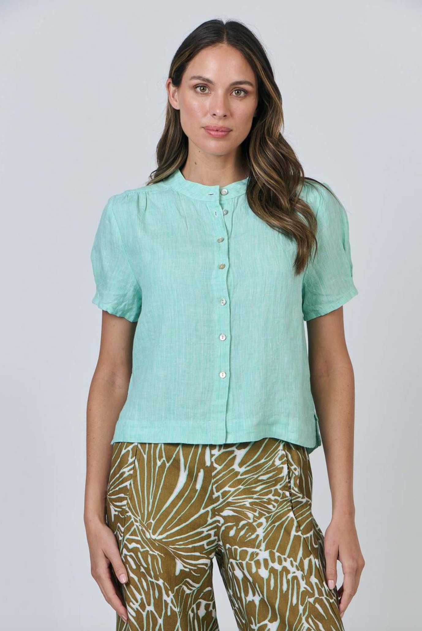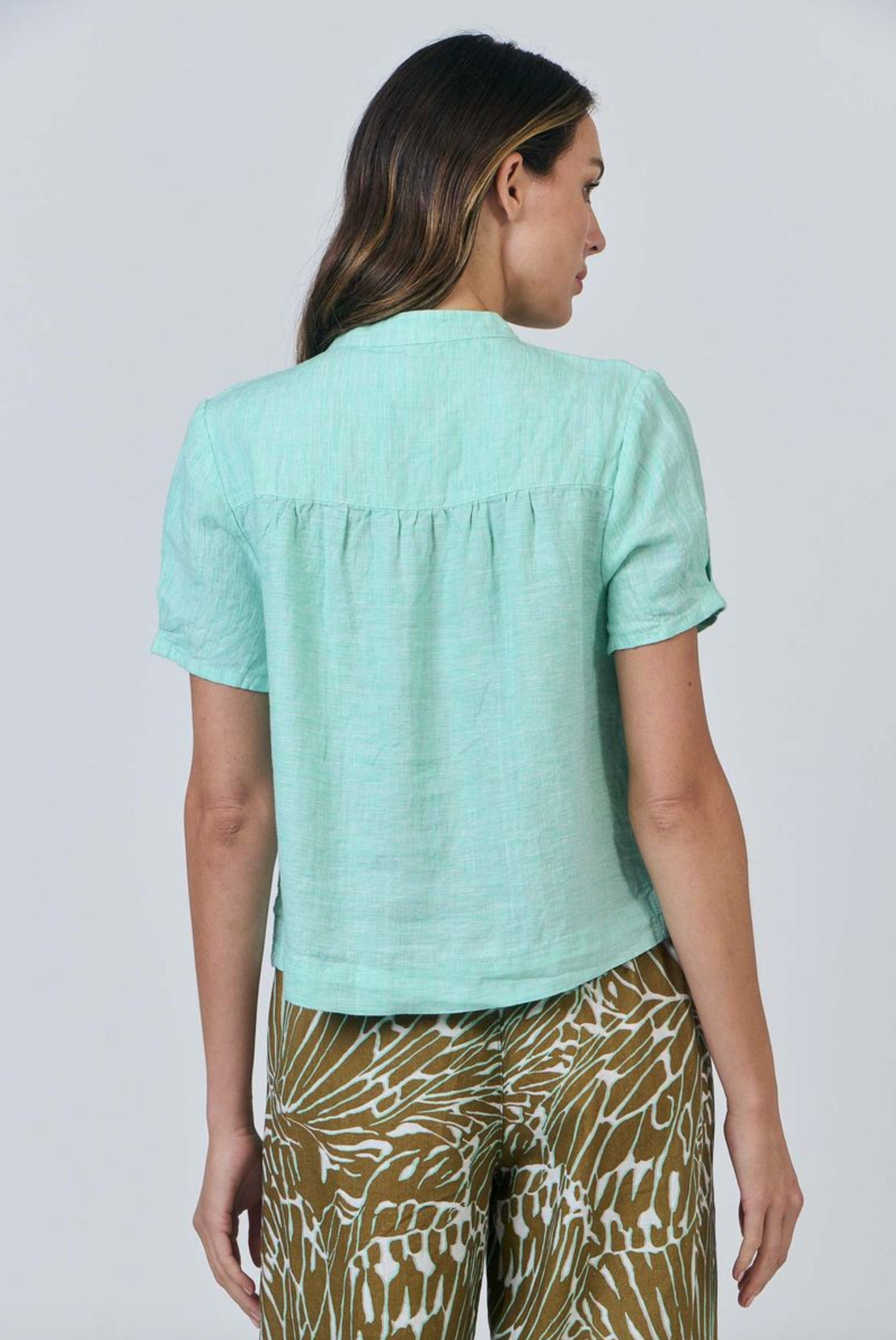 Designed for warm weather, the Naturals GA547 Mint Shirt combines comfort and style effortlessly. Crafted from 100% linen, it offers breathability and a relaxed fit ideal for sunny days. The classic band collar can be buttoned up for a polished silhouette, while the short sleeves and button-down front enhance its ease of wear. A subtle pleat at the back allows gentle movement, ensuring you stay cool and comfortable during warm afternoons. This top is a versatile and refined choice for effortless summer dressing.