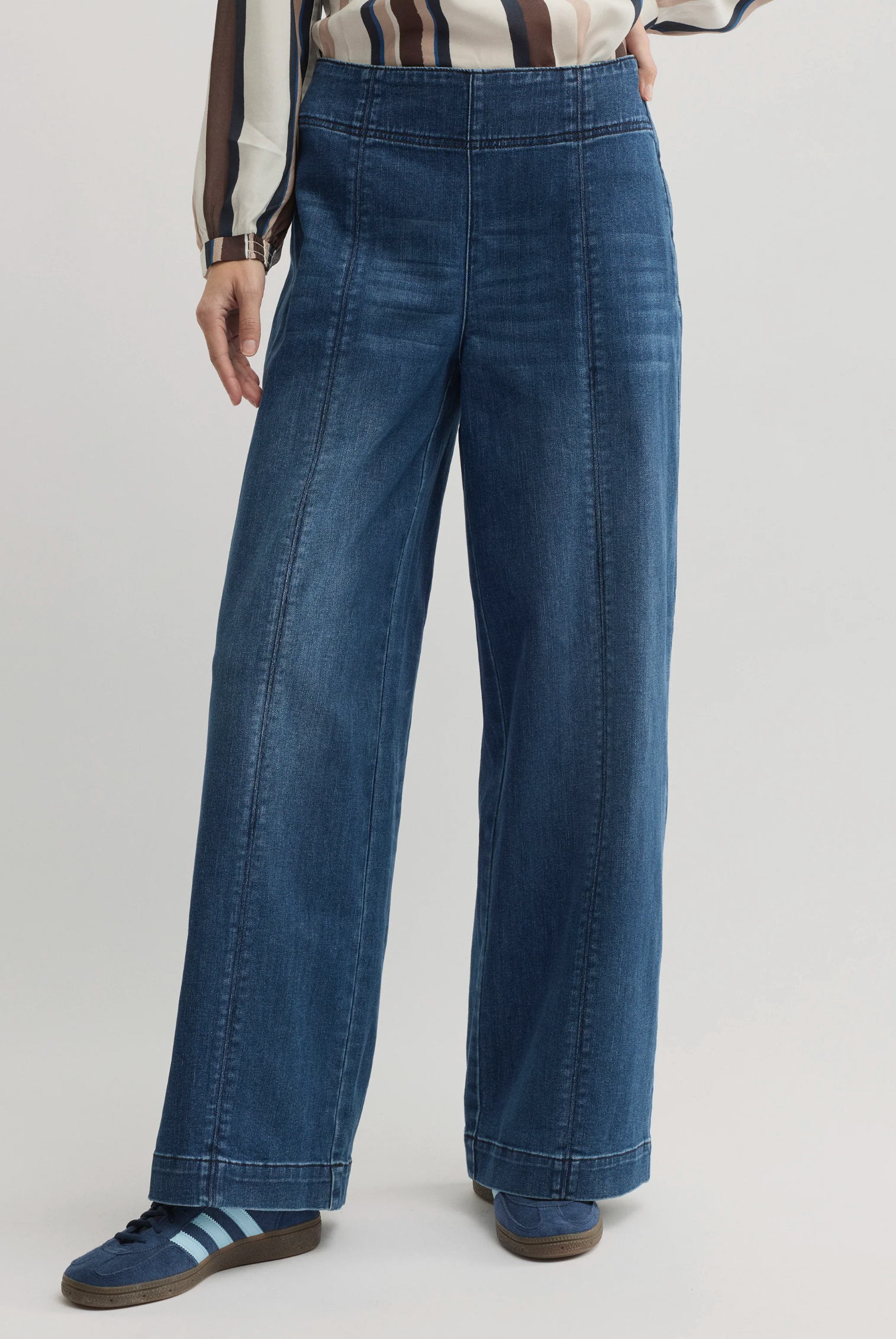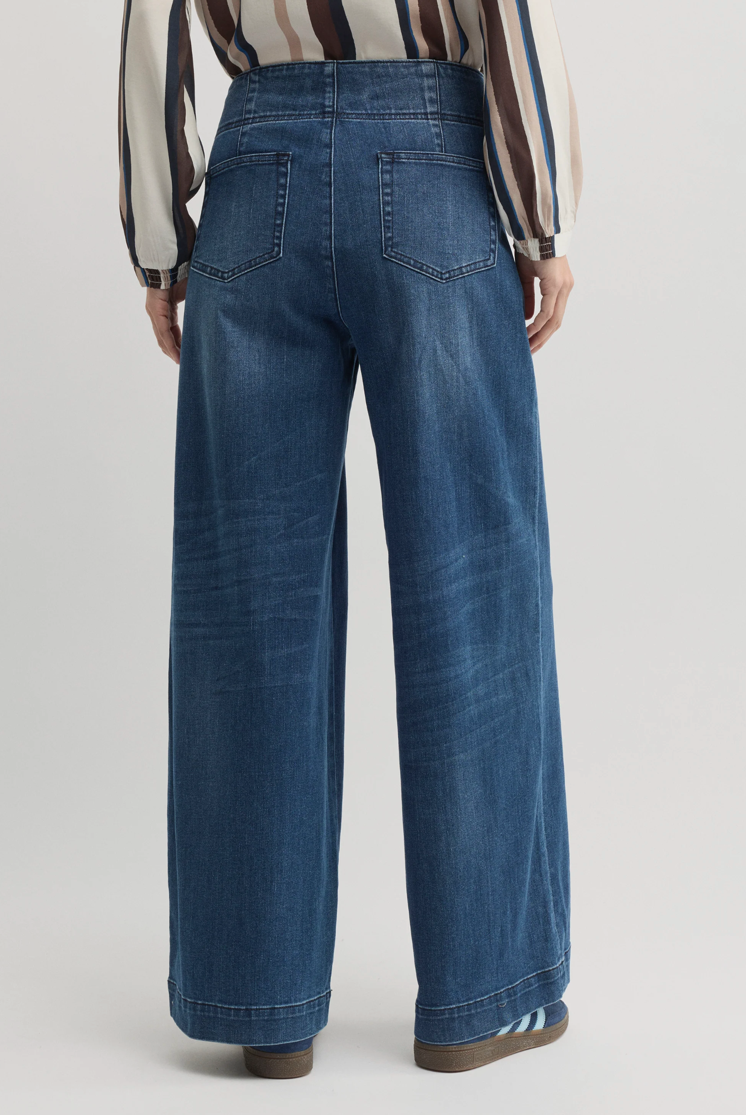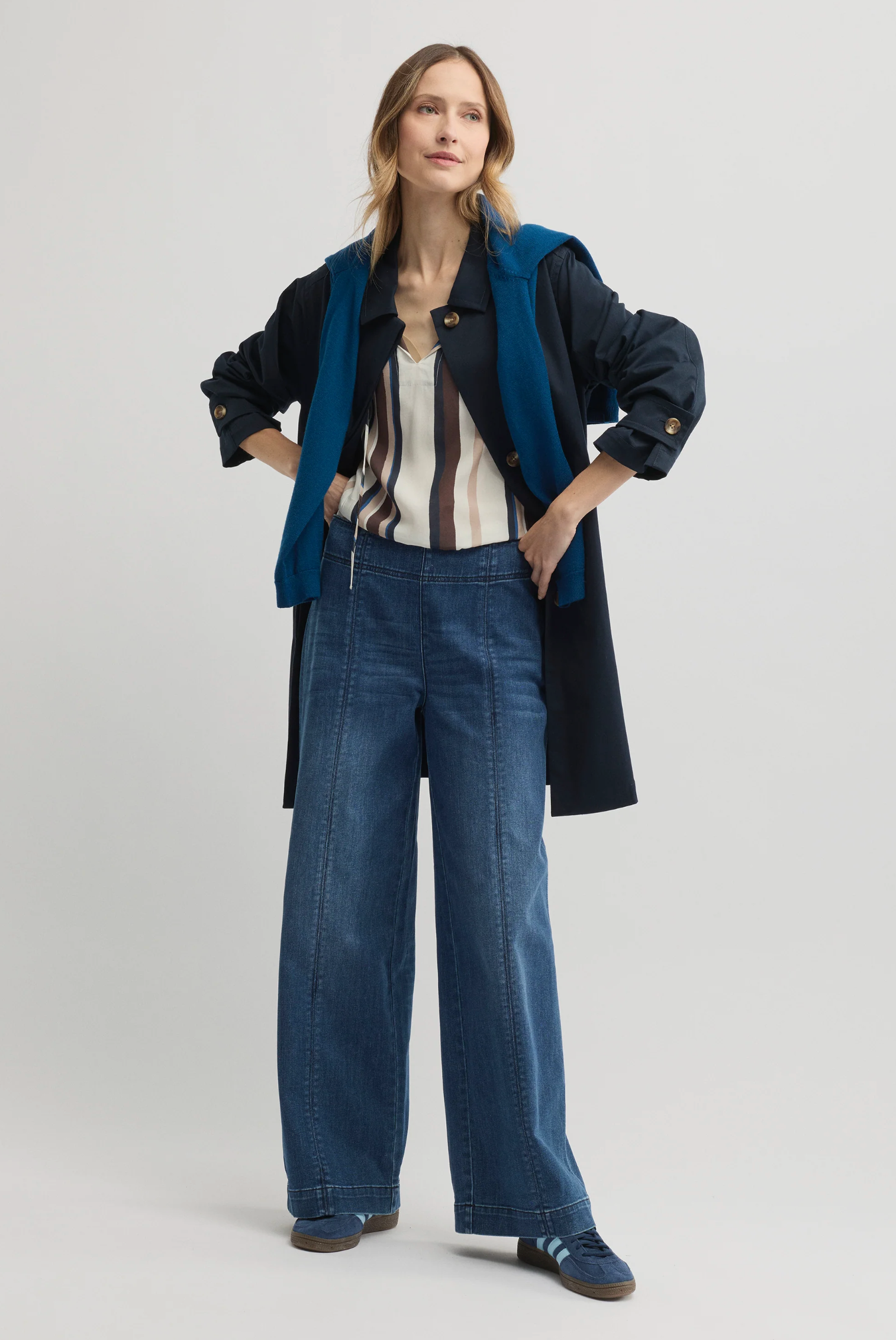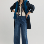 Cut from soft stretch blue denim, the Oregon Wide Leg Jean brings a relaxed yet polished feel to everyday dressing. Designed with a smooth waistband that sits flat against the body and a full-length wide leg, it creates a clean, elongated silhouette, finished with patch pockets and tonal topstitching for subtle structure. Effortless to style with knitwear, shirting or simple tees, it’s a versatile foundation for workdays, weekends and everything in between.