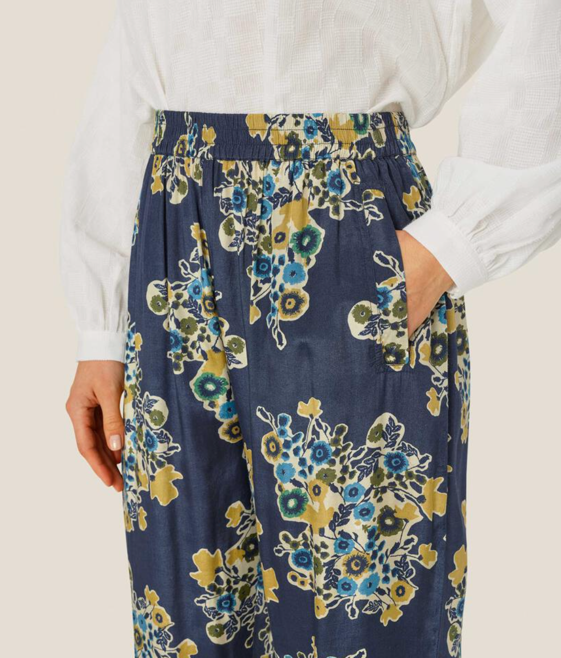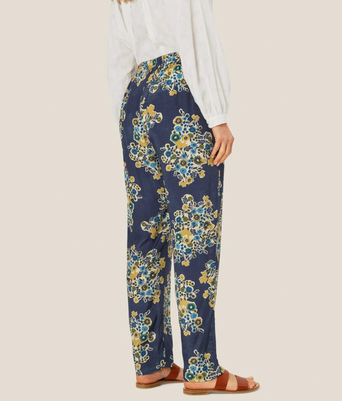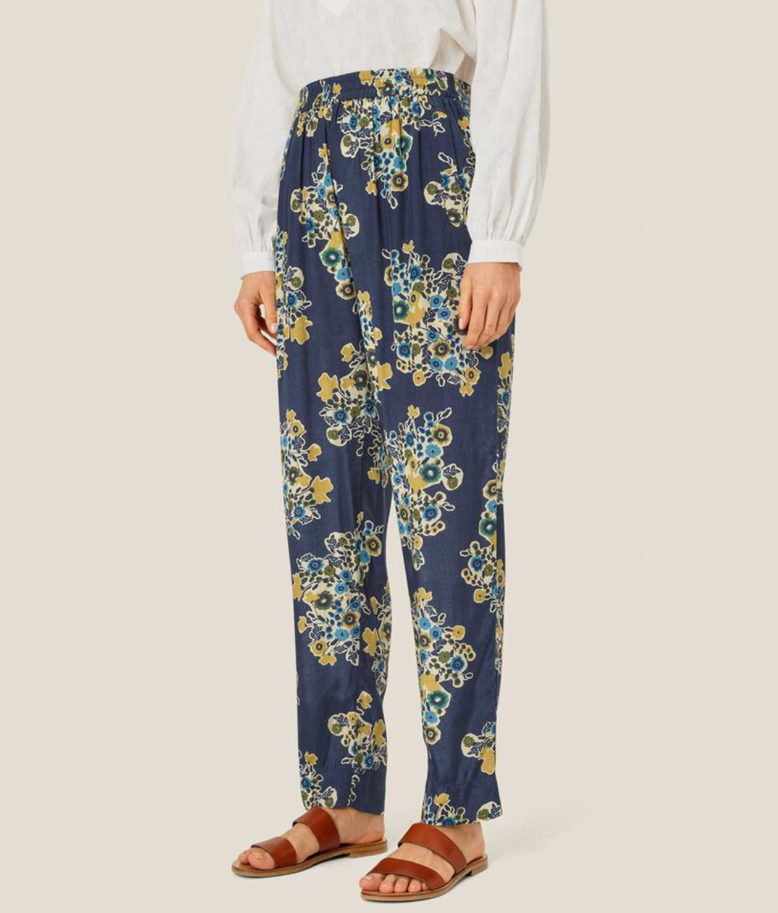 Patterned trousers are perfect for adding personality to your look, and we love the floral print on this pair. The trousers are made from soft and comfortable viscose, and the elasticated waistband provides ultimate comfort. The trousers feature long, narrow legs and slit pockets at the sides. Create a stylish look with a solid-coloured top or style the trousers with a matching top in the same print for a more creative and playful look.