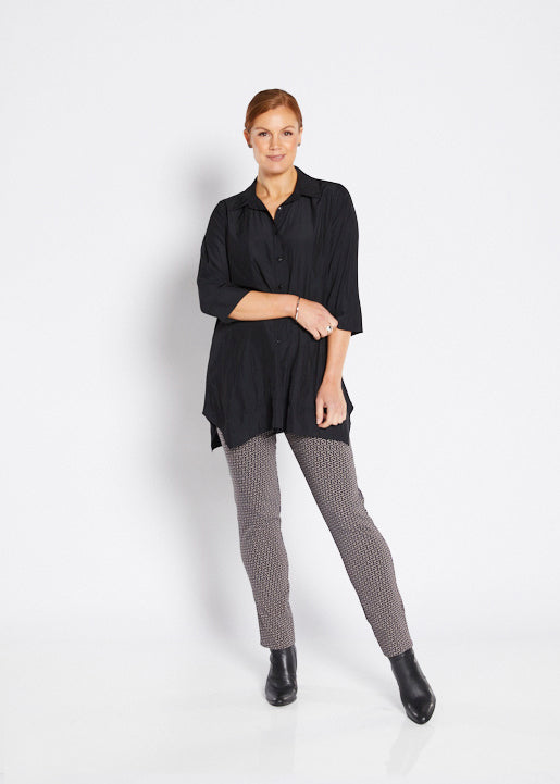 With its pull on style with elasticated waist, these are great pants for travel, work and play as they look as good at the end of the day, as they did at the start. They are a slim cut, which works with any top or tunic and are full length.