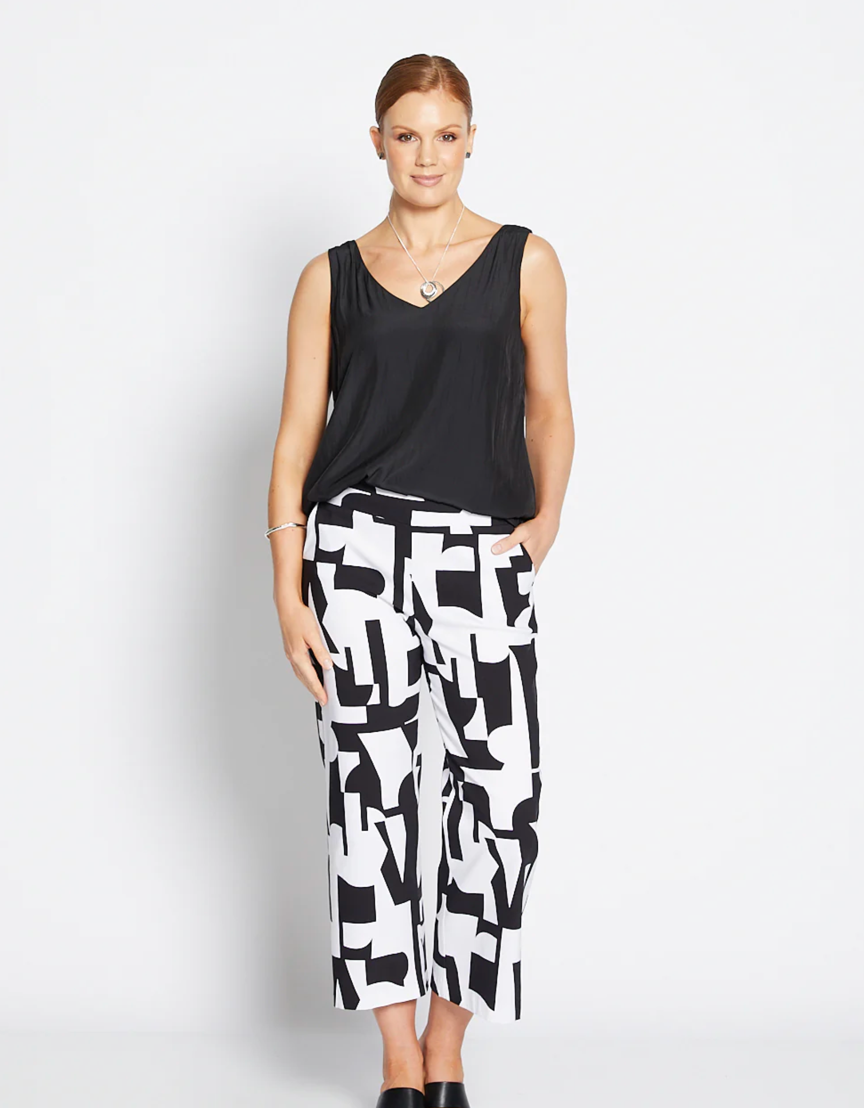 The perfectly cut culottes in a graphic black and white print