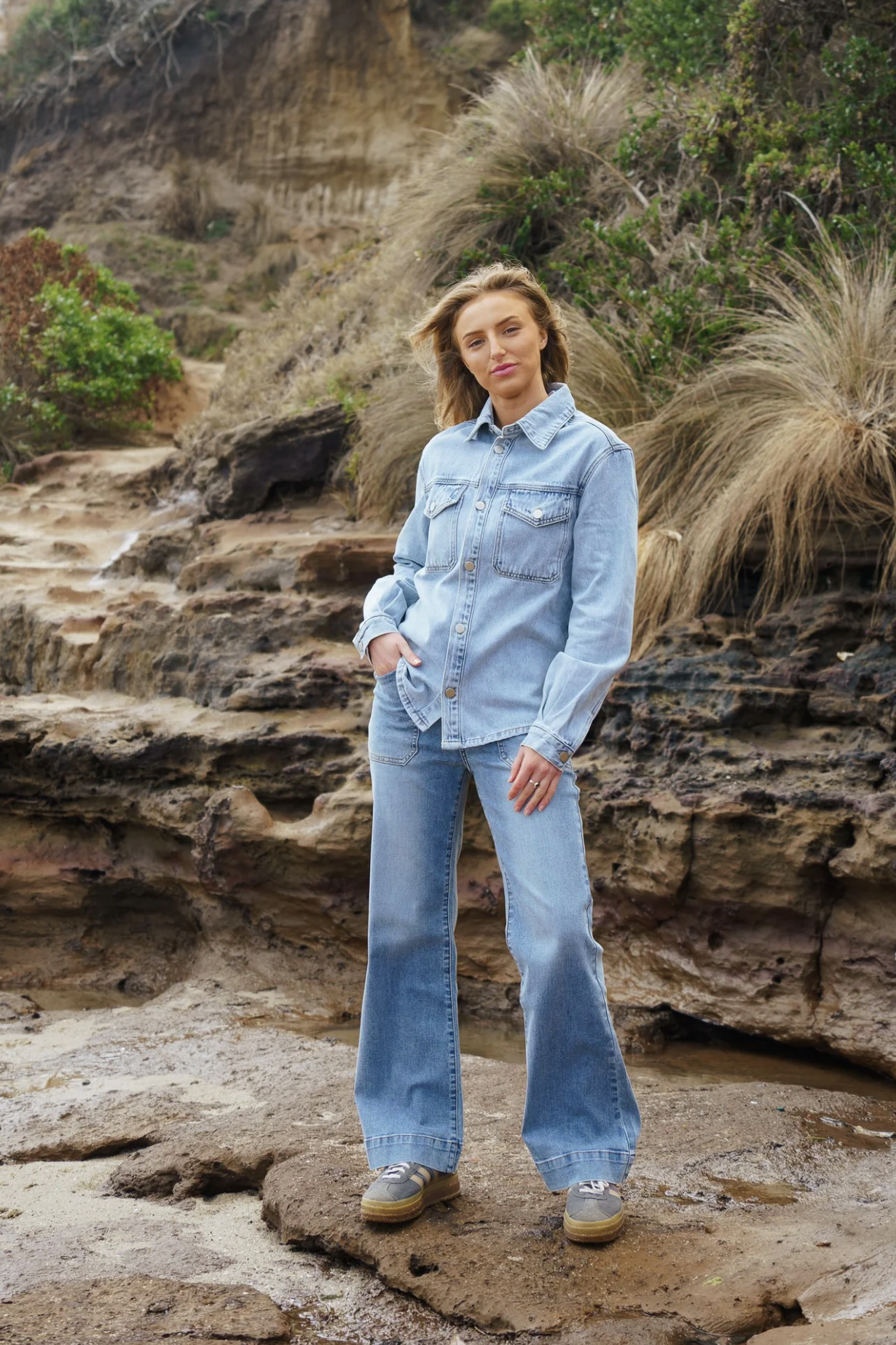 Jayne wide leg Jean is your perfect denim update for the season. Made from our super stretch amazing comfort denim in indigo wash.