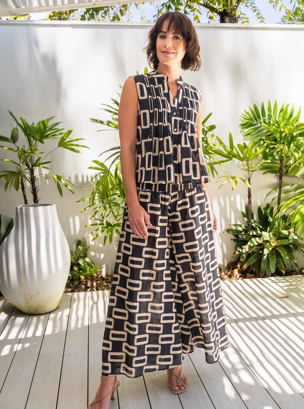 Make a statement with the See Saw Elastic Waist Wide Leg Pant in the bold Geo print. Crafted in a breezy silhouette with modern graphic flair, this wide leg pant is as stylish as it is comfortable. Featuring an effortless pull-on style with a softly elasticised waist, it’s perfect for relaxed days, travel, or lunch with friends.