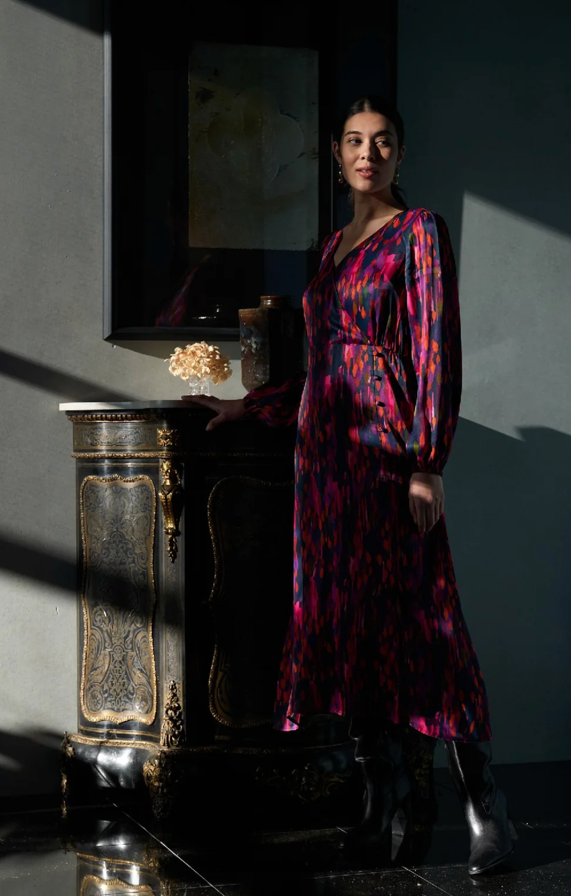 Turn heads with the FOIL Blockbuster Dress. Crafted from 100% viscose, this lightweight and breathable dress drapes beautifully on the body, offering effortless elegance for any occasion. Featuring a flattering silhouette, soft round neckline, and long sleeves, the dress is designed to keep you comfortable while exuding sophistication. The eye-catching prints bring a pop of personality to your wardrobe, making it perfect for everything from workwear to weekend outings.