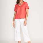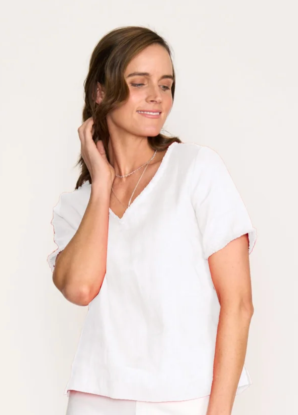 The Foil V Benefits Top features fluffy raw edged trim along the sleeves and neckline, with a relaxed shape that still feels polished. Dress it up or pair it with your favourite denim—it just works.