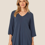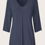 A well-fitting navy top is a must-have in your wardrobe. This beautiful top is made from soft viscose in our popular bias cut, so that it hugs your body beautifully and elegantly. It is designed with a deep, feminine V-neck, so you can also layer it with a thin roll neck underneath. A timeless top you’ll want to wear again and again.