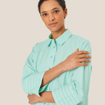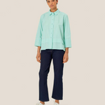 A solid colour shirt is a wardrobe staple, and this version breathes new life into any look. It features a classic, straight cut that offers generous comfort, allowing the shirt to drape loosely and beautifully down the body. The crinkled soft cotton is delightful to wear, and the shirt comes with three-quarter length sleeves and decorative stitching on the cuffs. Wear it with your favourite trousers, a stylish skirt or under a vest depending on your mood. Available in Mood Indigo and Turquoise.