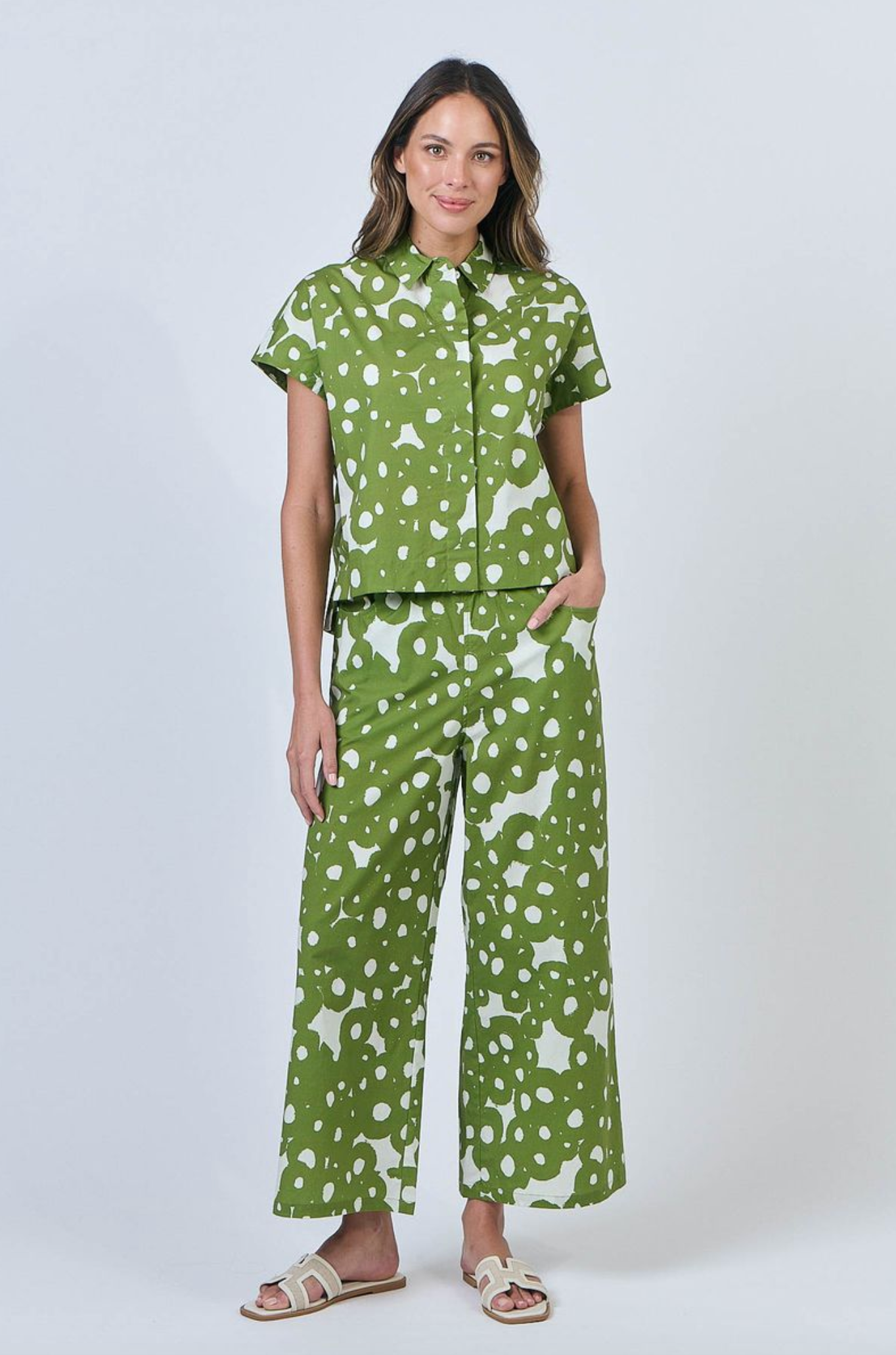 The Moss Barnacles Print is 97% Cotton 3% Elastane