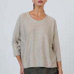 Perfect for days that call for light layering, this sweater delivers an easy, cosy feel without the bulk. This relaxed crew neck jumper is defined by its boxy silhouette and smooth fine-gauge knit. The drop shoulders create a laid back shape, while the 3/4 length sleeves offer year round versatility. Ribbed trims at the neckline and cuffs keep the look polished without adding weight. A minimalist staple made to fit seamlessly into cool weather wardrobes.
