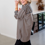 - classic collared shirt style with contrasting stripes in praline and black
