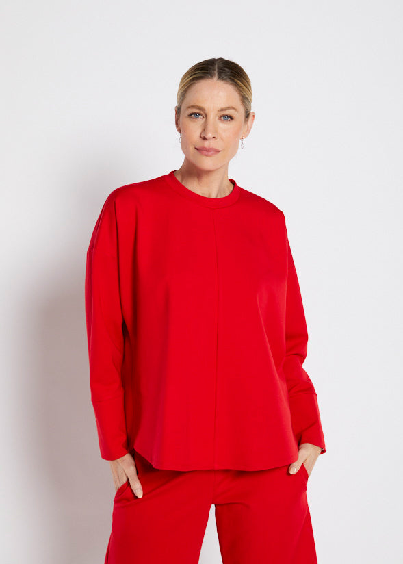 - Design – Crew neckline with long sleeves and a central seam for a streamlined look.