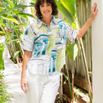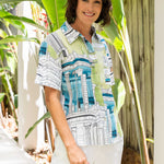 SEE SAW Linen Short Sleeve Deep Hem on Cuff Shirt