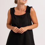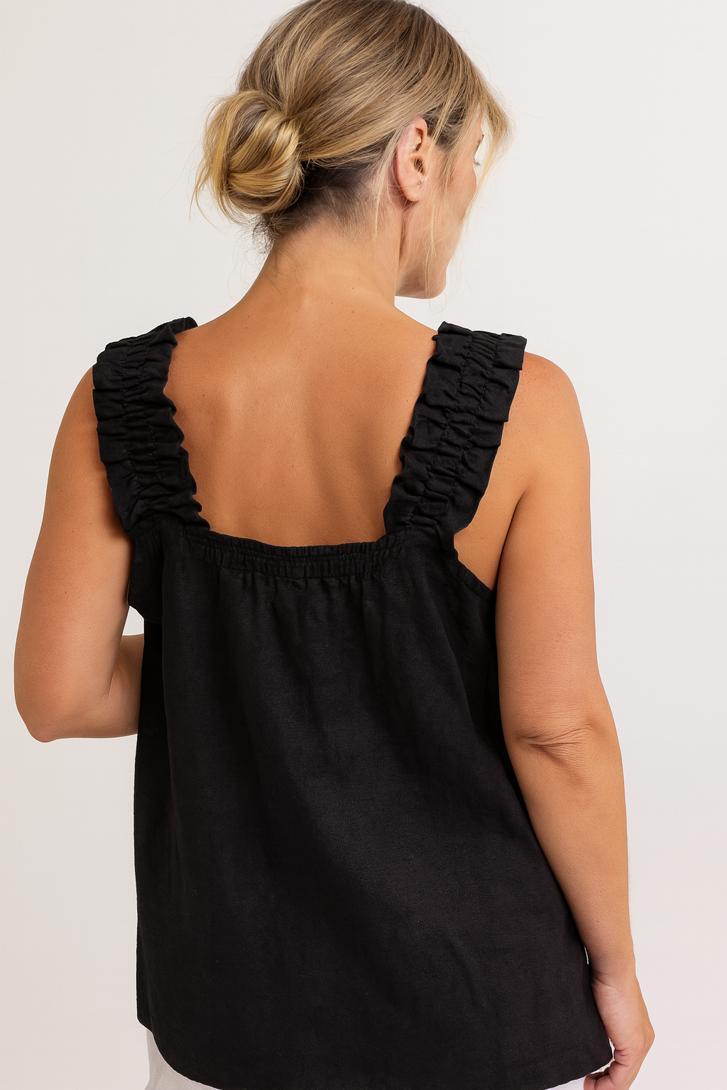 Crafted from 100% linen, the SEE SAW Linen Square Neck Top features a flattering square neckline and wide ruffled straps designed to comfortably fit over your bra. Its slightly longer length and A-line cut provide a relaxed, elegant silhouette that enhances comfort and style. Ideal for a sophisticated yet effortless look.