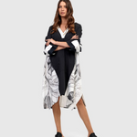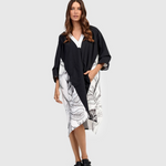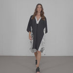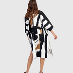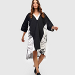Crafted from a comfortable cotton poplin, the Urban by Alembika Botanica Dress features an abstract floral pattern in black, white, and tan tones. Its oversized silhouette with a V-neck and practical pockets offers both style and functionality, making it an ideal choice for effortless, contemporary wear.