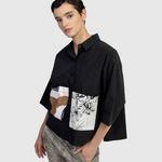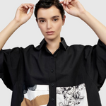 - On the front of the shirt, a pair of pockets below the bust line made of printed cotton with different prints