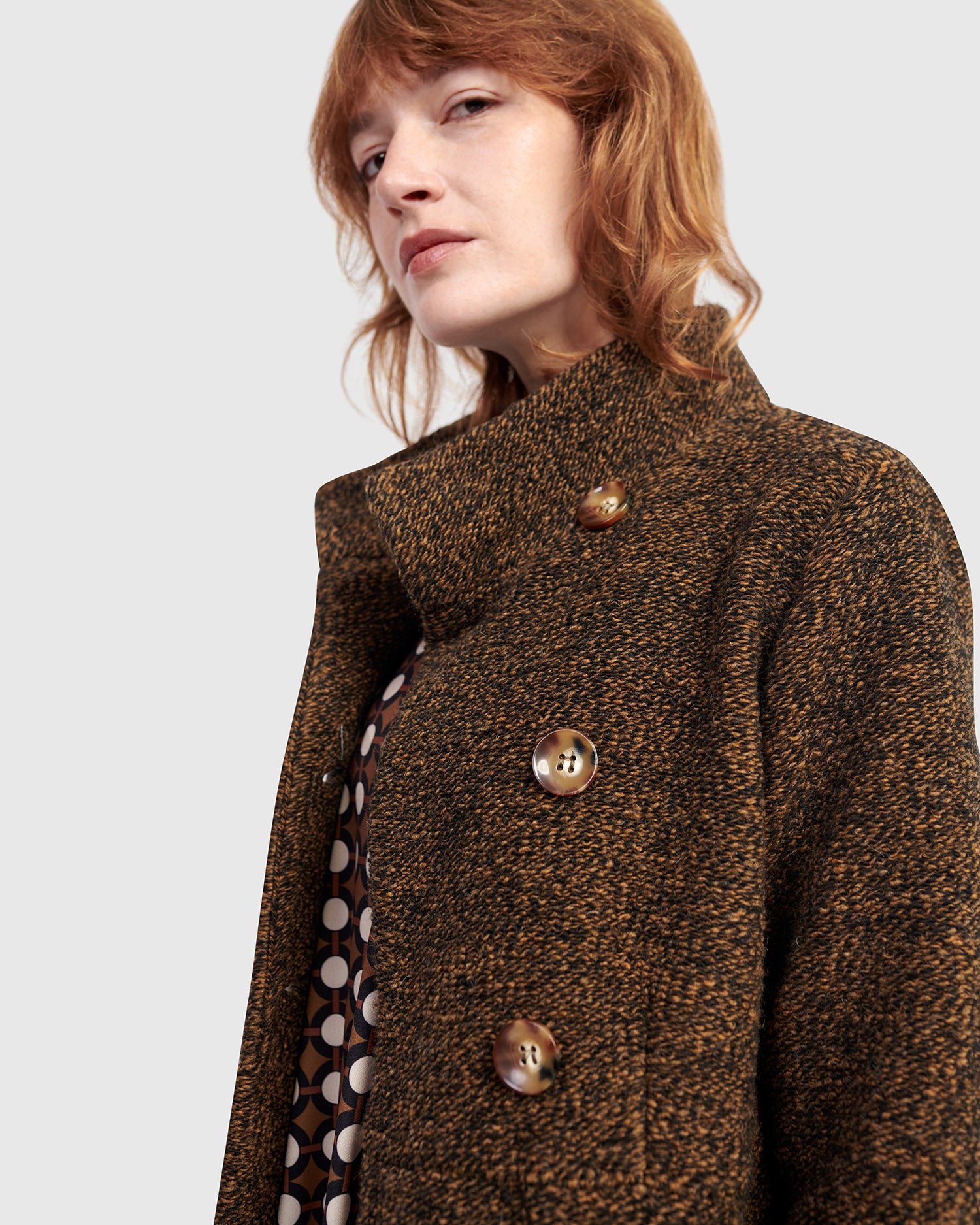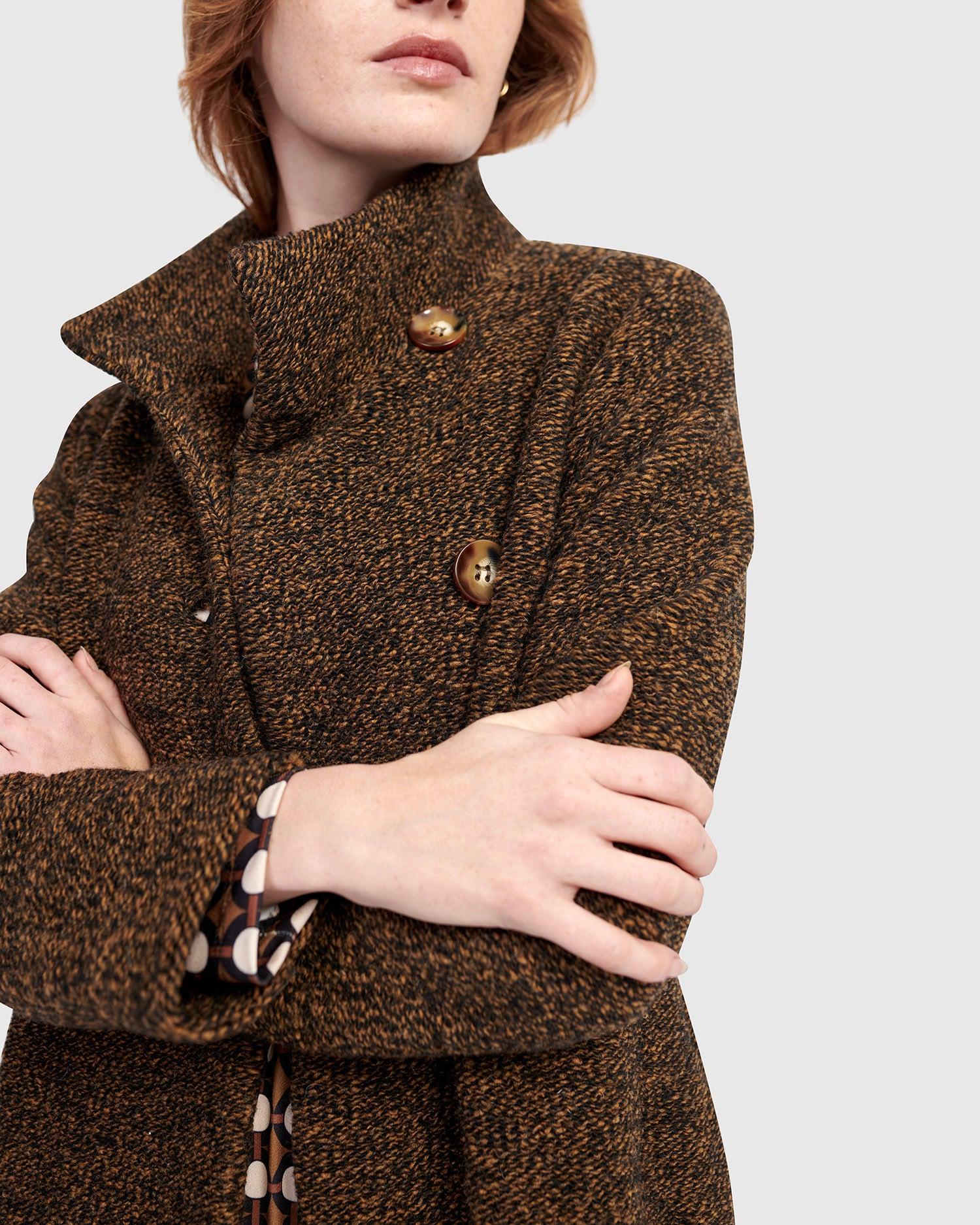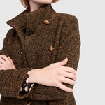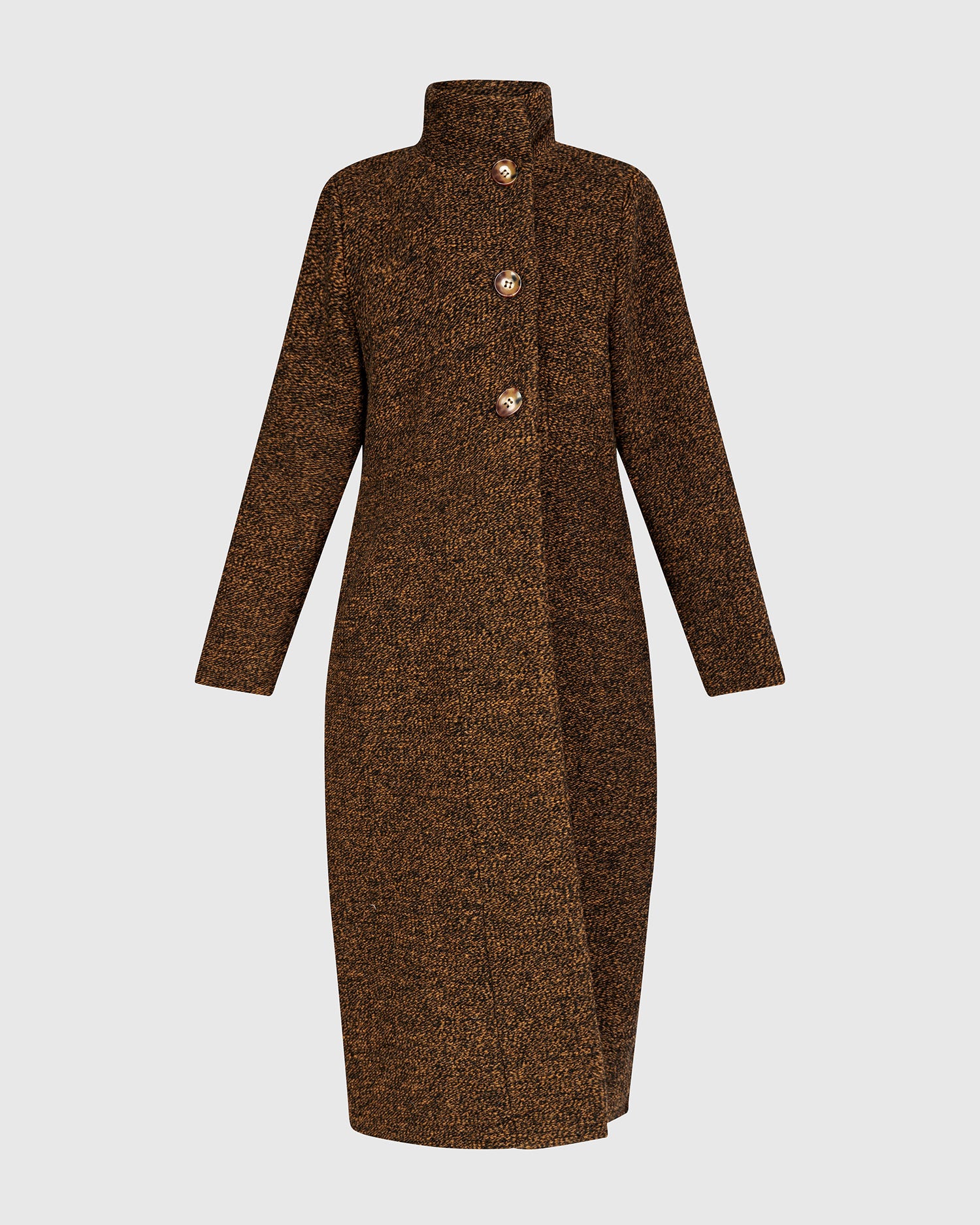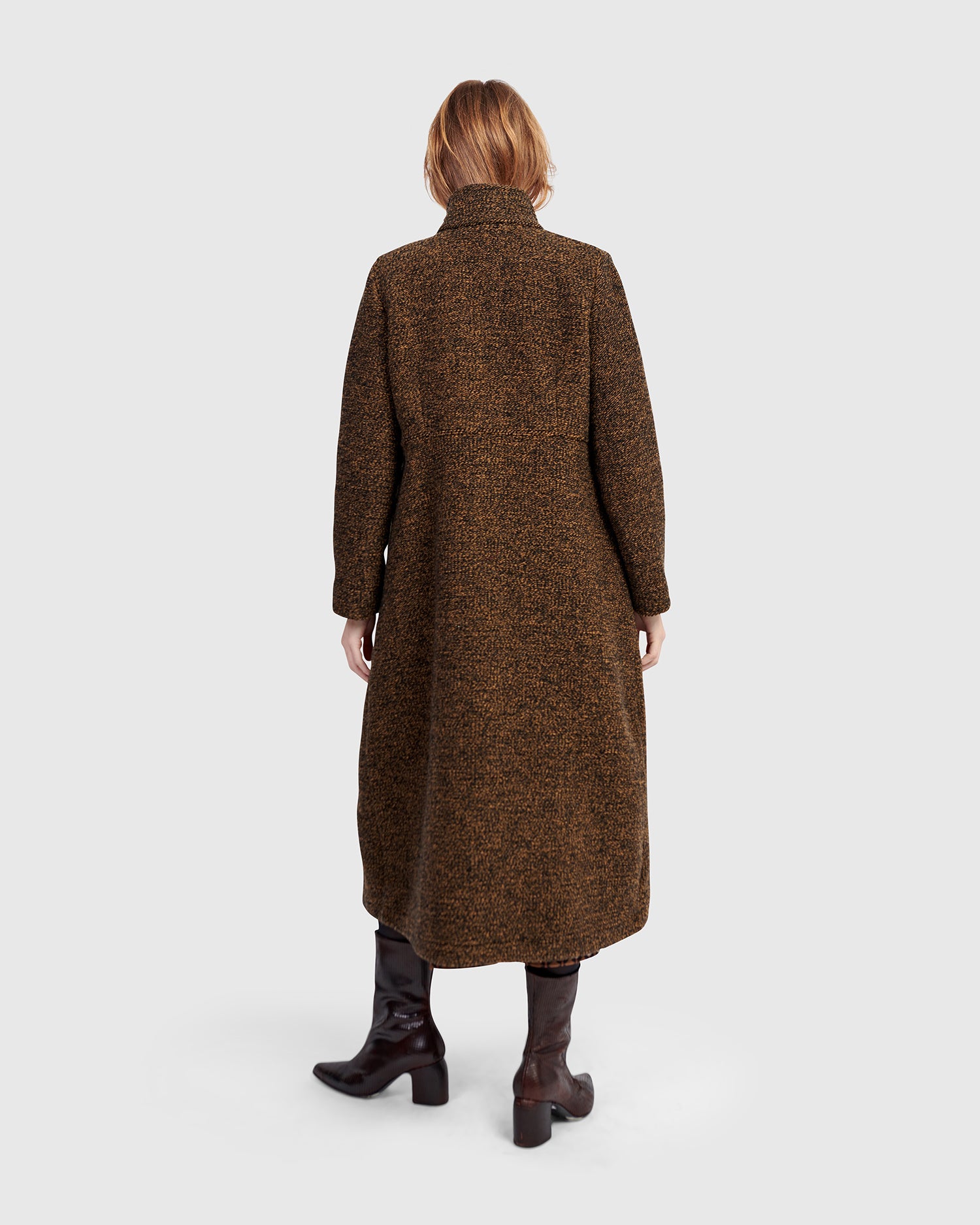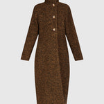The Urban Tash Coat blends timeless tailoring with cozy comfort. It features a gently flared silhouette that flatters a range of shapes, while the foldable high collar and mid-calf length offer added coverage. Crafted in a rich wool blend knit with a soft brushed finish, this versatile coat moves seamlessly from day to night.