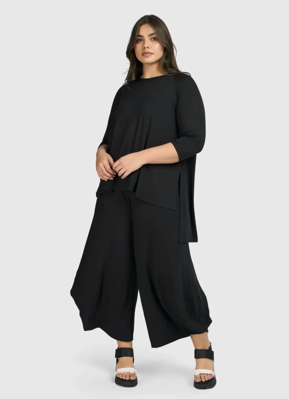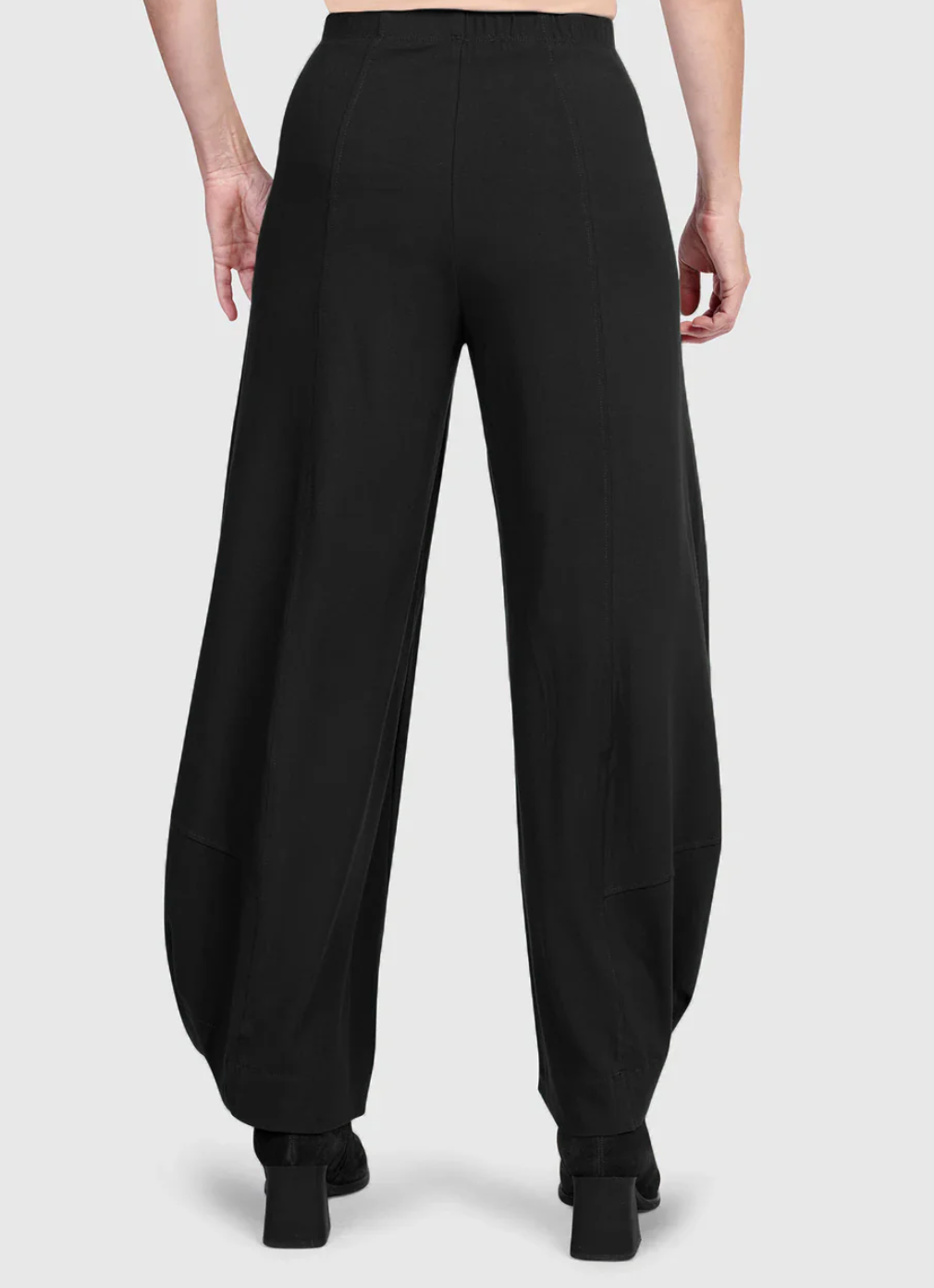 Alembika's signature Puntos are just the pants for wherever the day takes you, a best-seller for good reason! Made in a soft stretch jersey knit, with a smooth elasticized high-waist, mock fly, and signature architectural hem. Go get 'em!