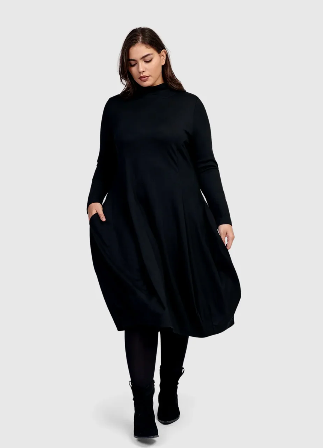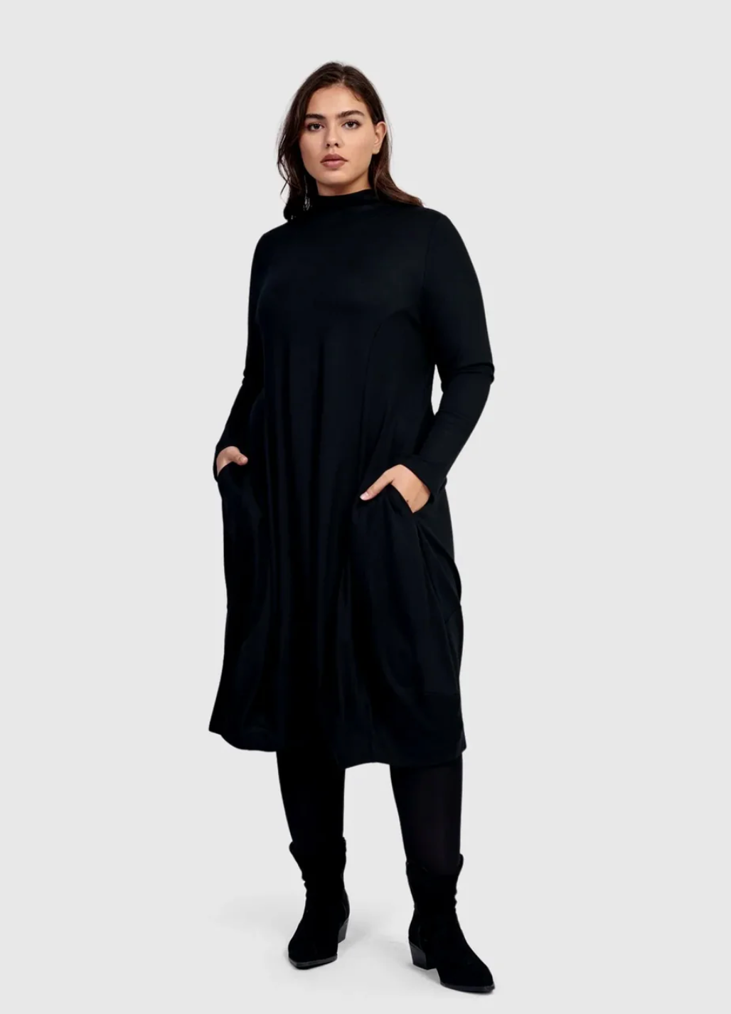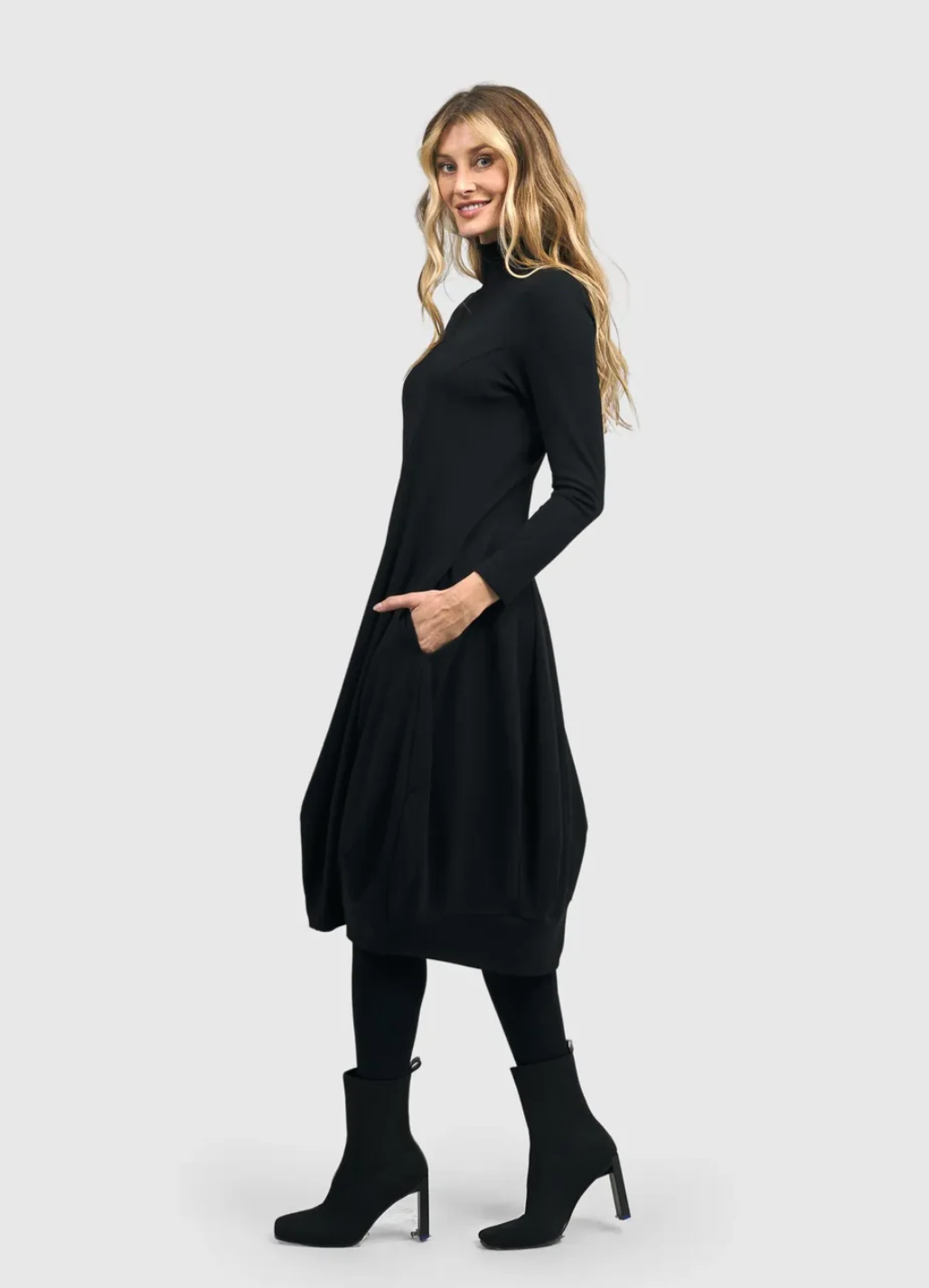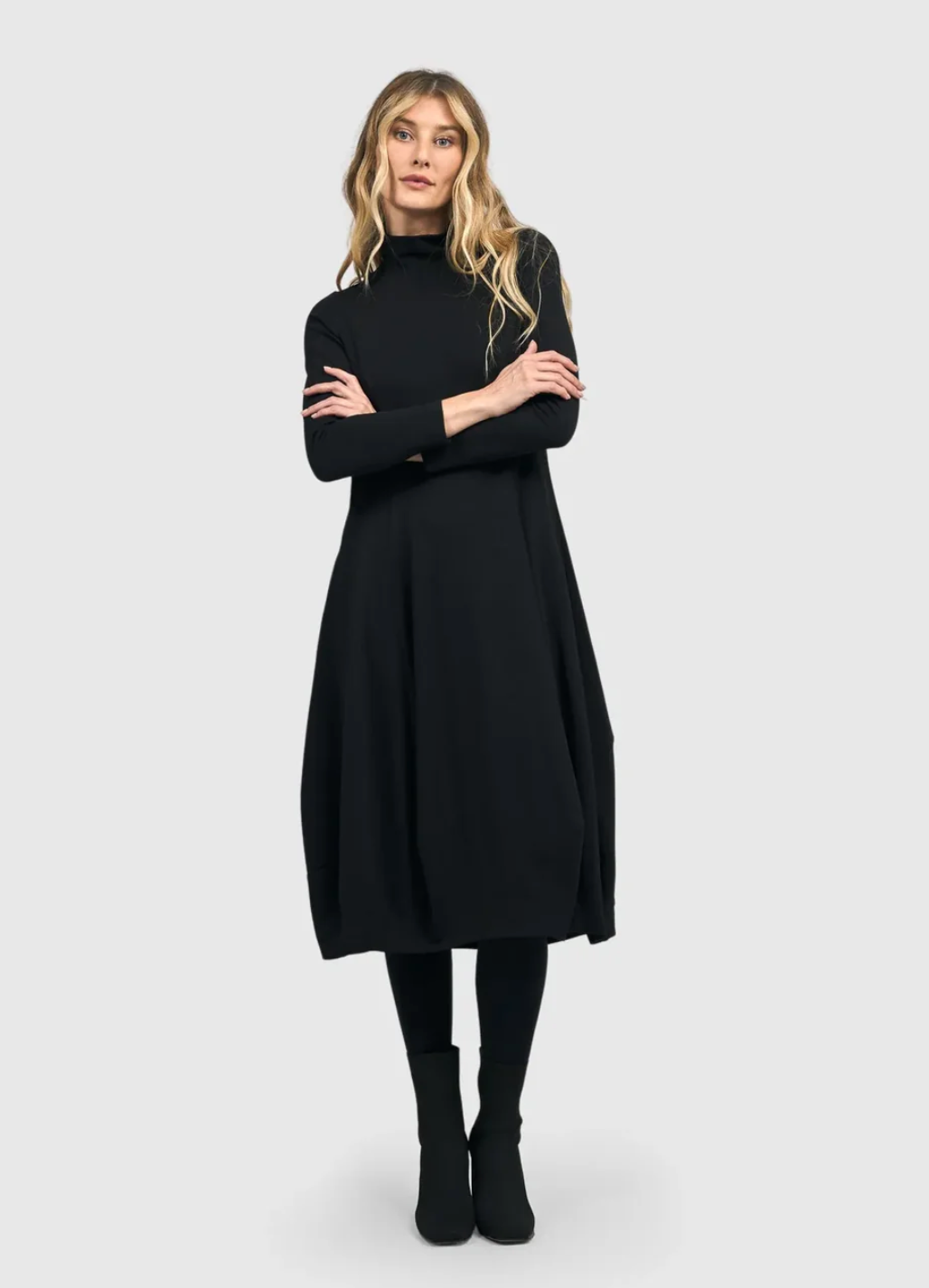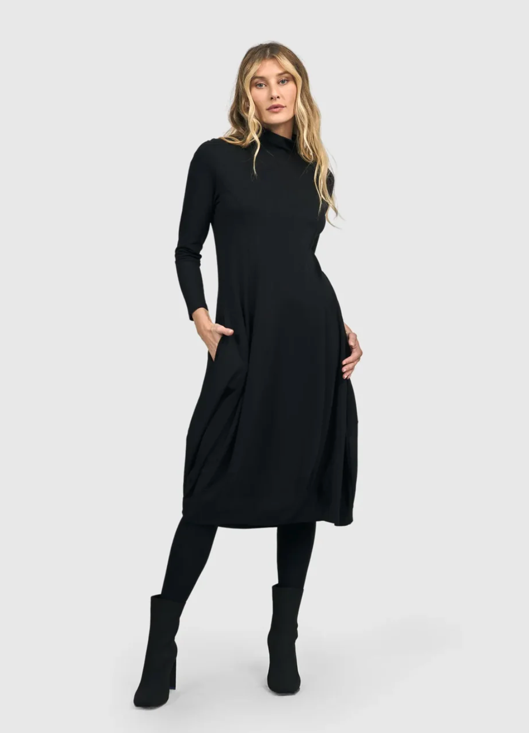 Make Alembika Essentials part of your daily uniform – this elegant turtleneck dress is an easy pullover style and ultimate wardrobe staple. Long sleeves, hidden side pockets, midi length. Style it however you like!