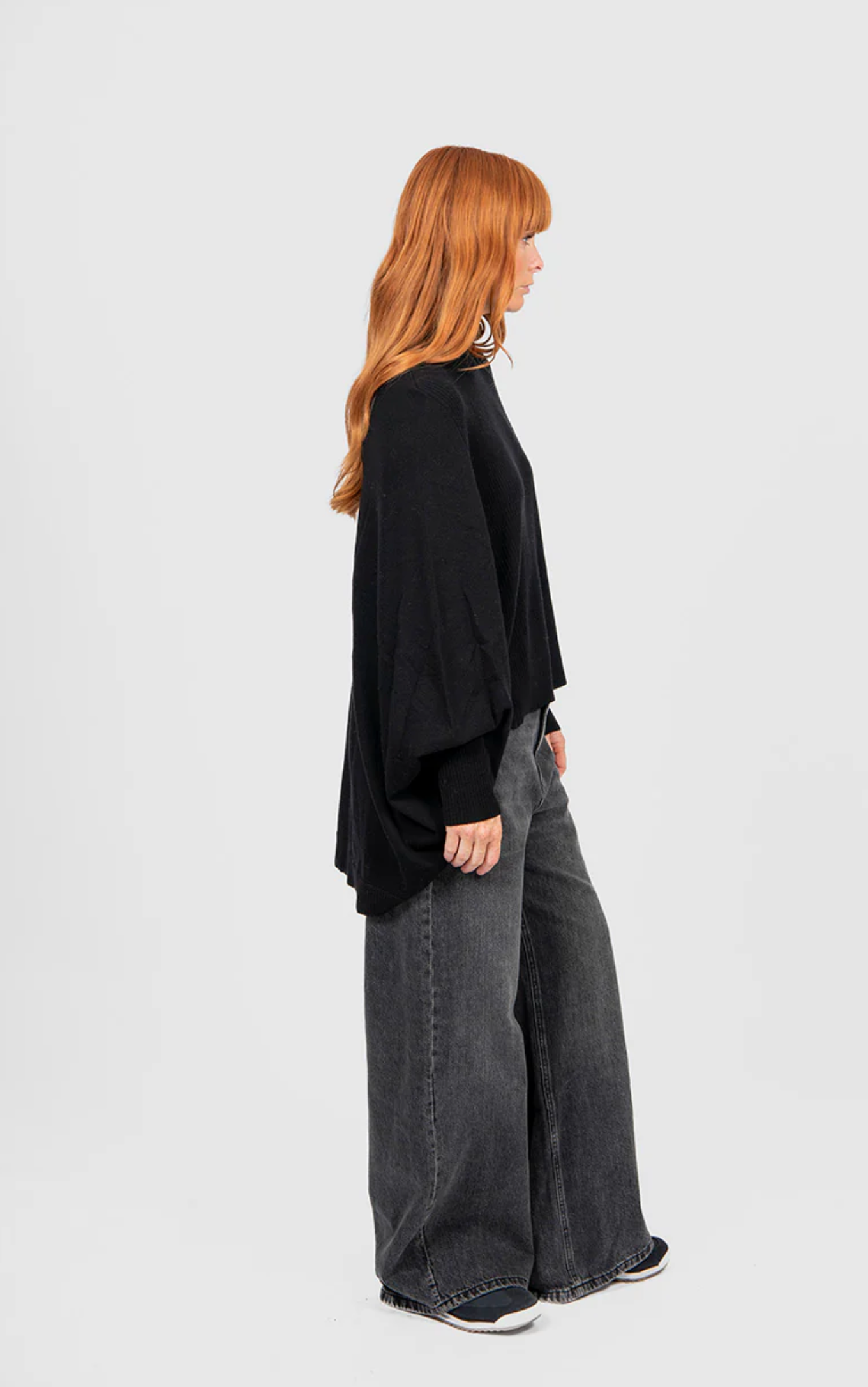 Introducing a pivotal addition to our seasonal narrative: the Poncho Pullover, a key directional piece that redefines relaxed elegance. Designed to elevate your everyday rotation, this sophisticated knitwear essential fuses a generous, flowing silhouette with the structural finesse of a subtle mock neckline and fine ribbed detailing. The relaxed dolman-style sleeves offer effortless movement, while the luxurious softness ensures uncompromising comfort. As a standout in our new collection, it captures the perfect balance of timeless style and modern sophistication.